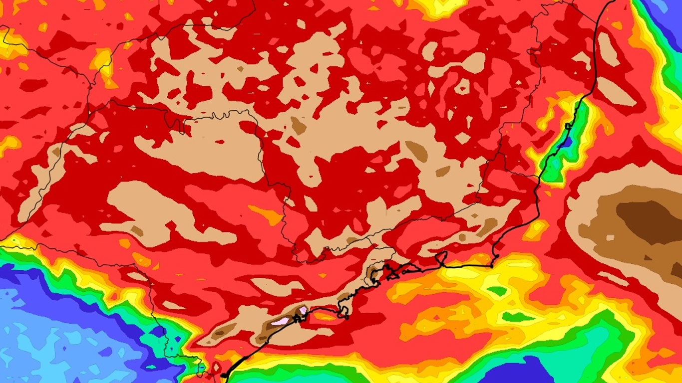 A MetSul Meteorologia reforça o alerta sobre período de chuva volumosa em parte do Sudeste do...