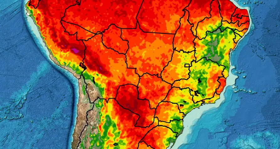 Ar quente cobre todo Centro-Sul do país com 35ºC ou mais em seis estados