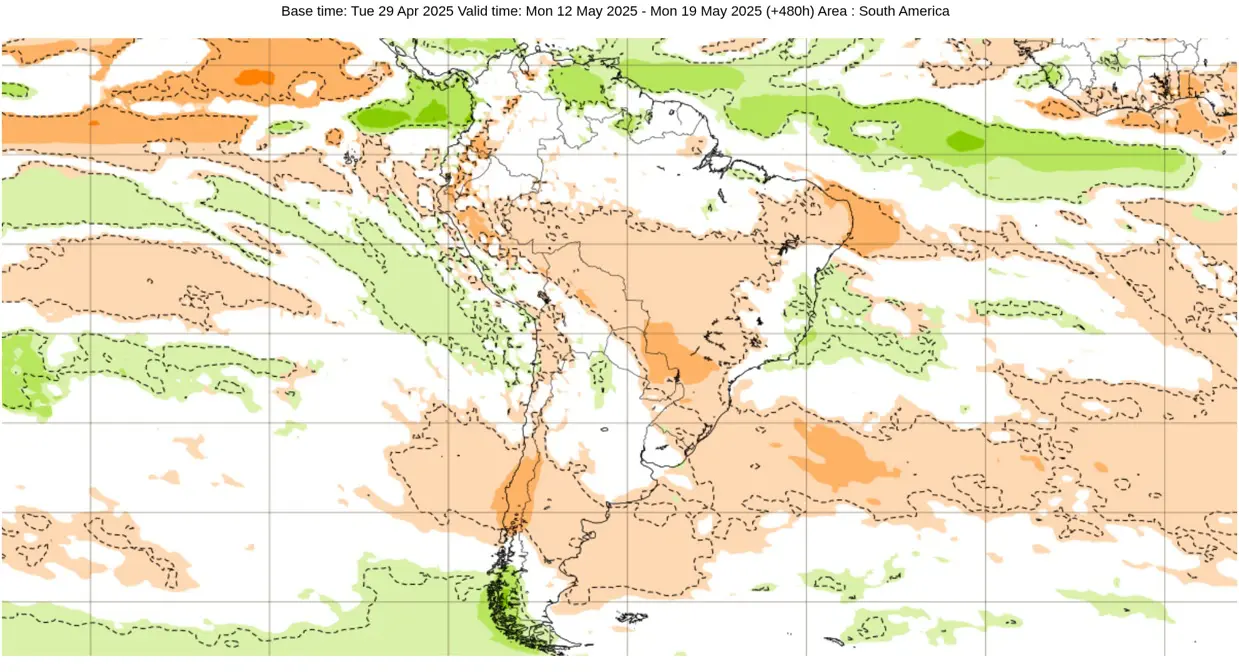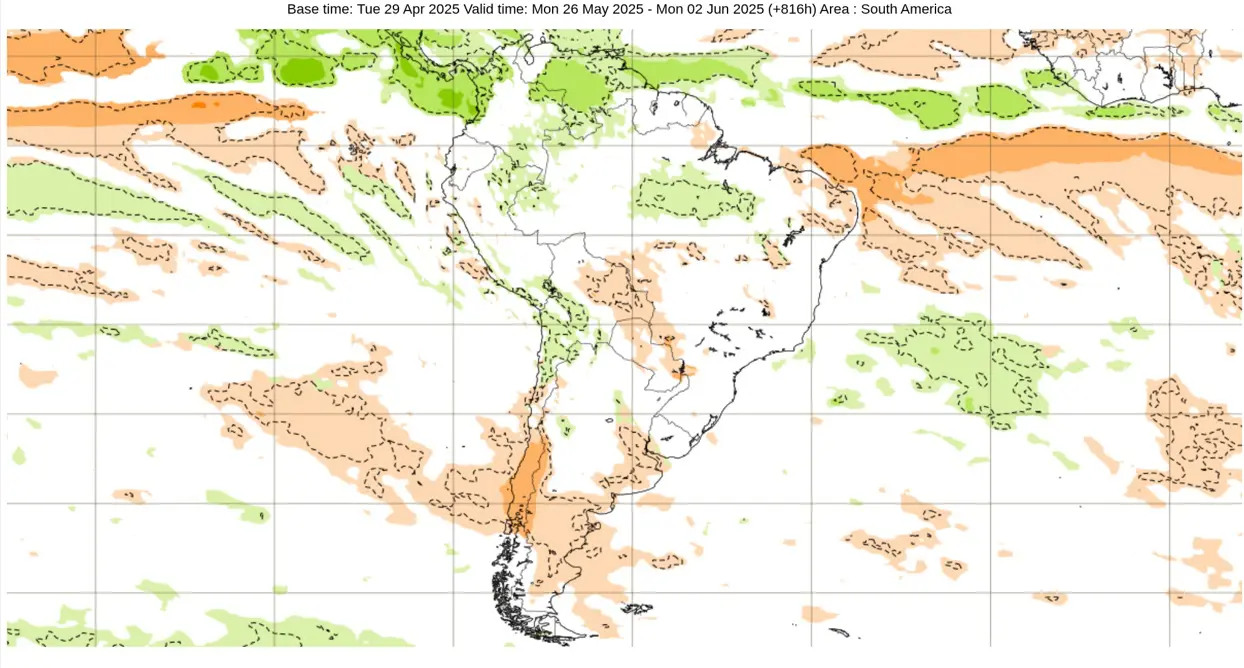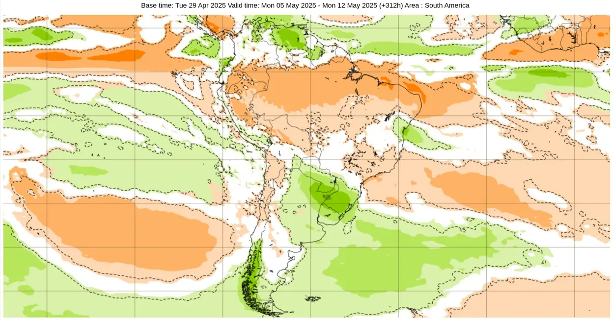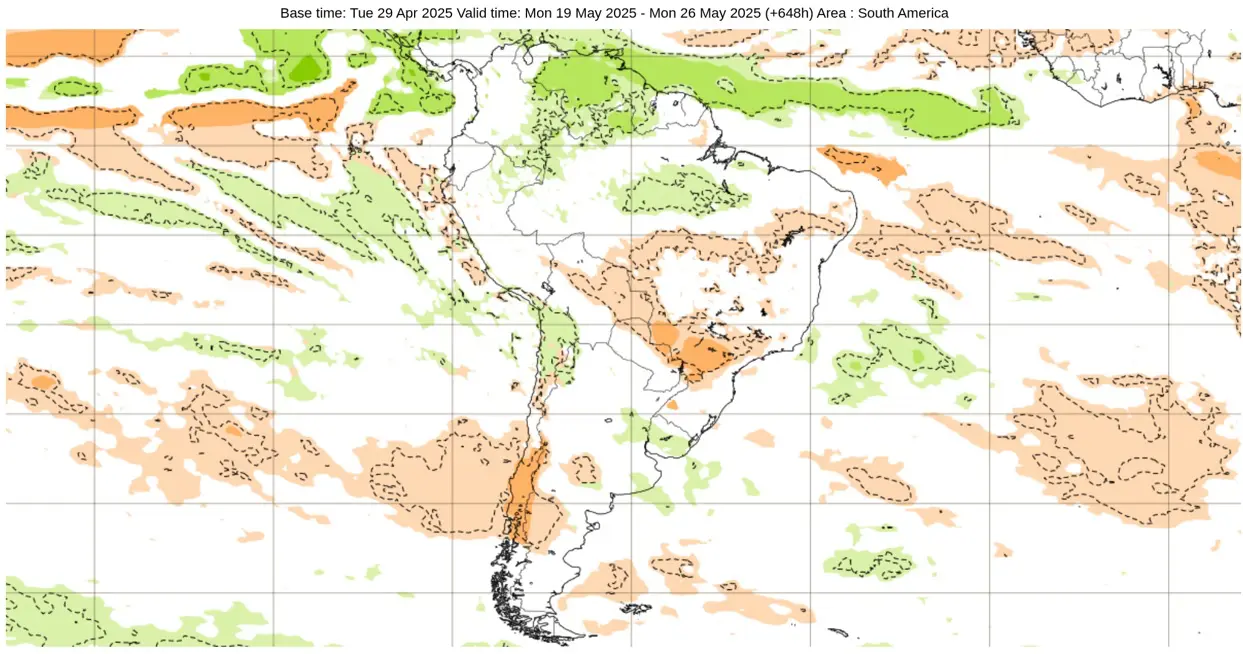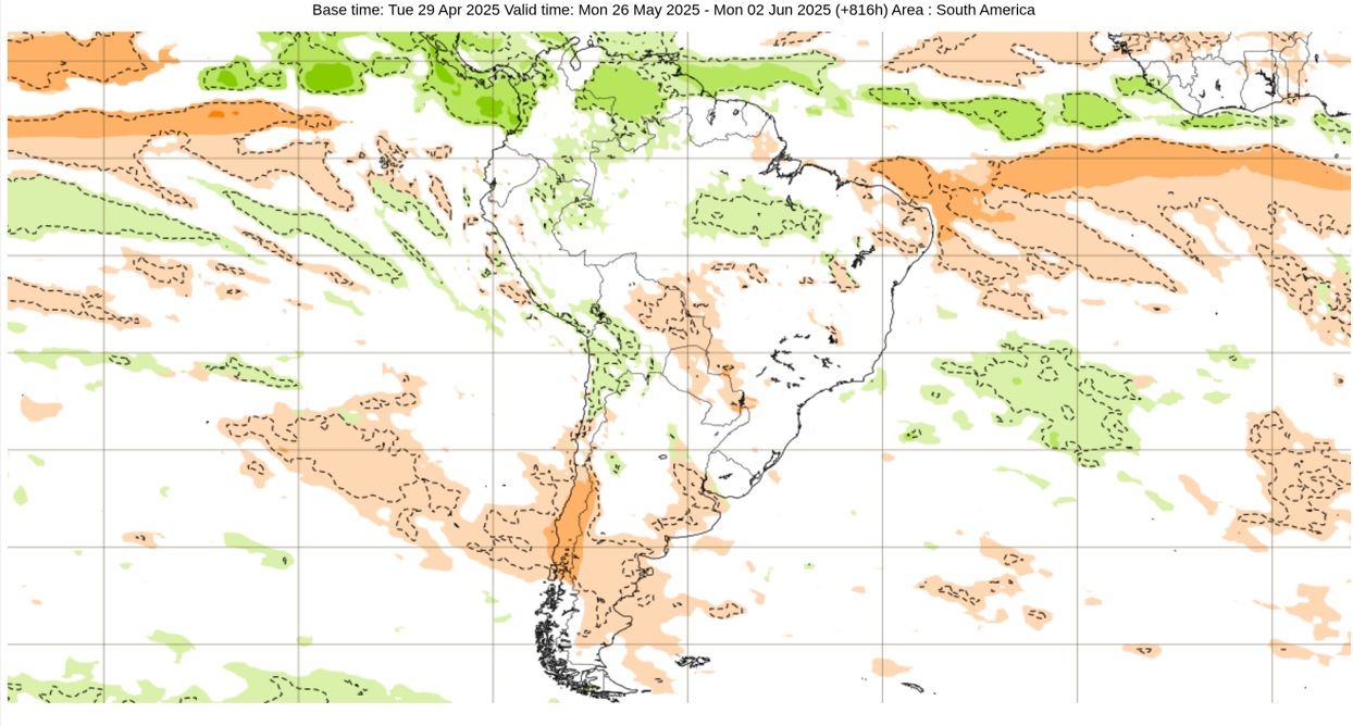 Modelos de clima, em geral, indicam um maio de chuva abaixo da média na maior parte do Centro-Oeste e do Sudeste do Brasil enquanto no Sul, exceção do Paraná, o sinal é de chuva perto e regionalmente acima da média.