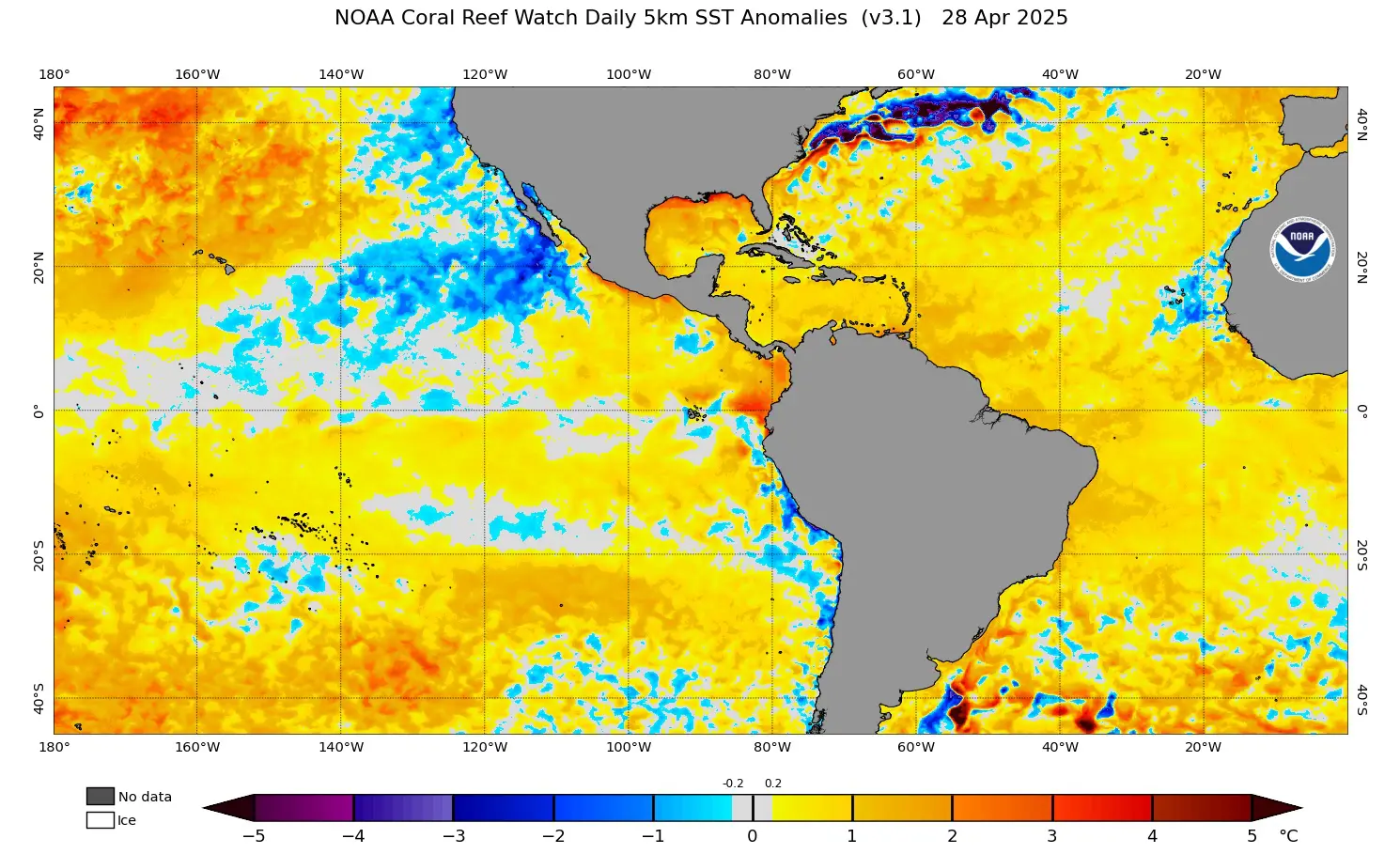 De acordo com o último boletim semanal da Administração Nacional de Oceanos e Atmosfera (NOAA), dos Estados Unidos, a anomalia de temperatura da superfície do mar era de +0,00ºC na denominada região Niño 3.4, no Pacífico Equatorial Central, que é usada oficialmente para definir se há um El Niño na forma clássica e de impacto global. O valor é de neutralidade absoluta.