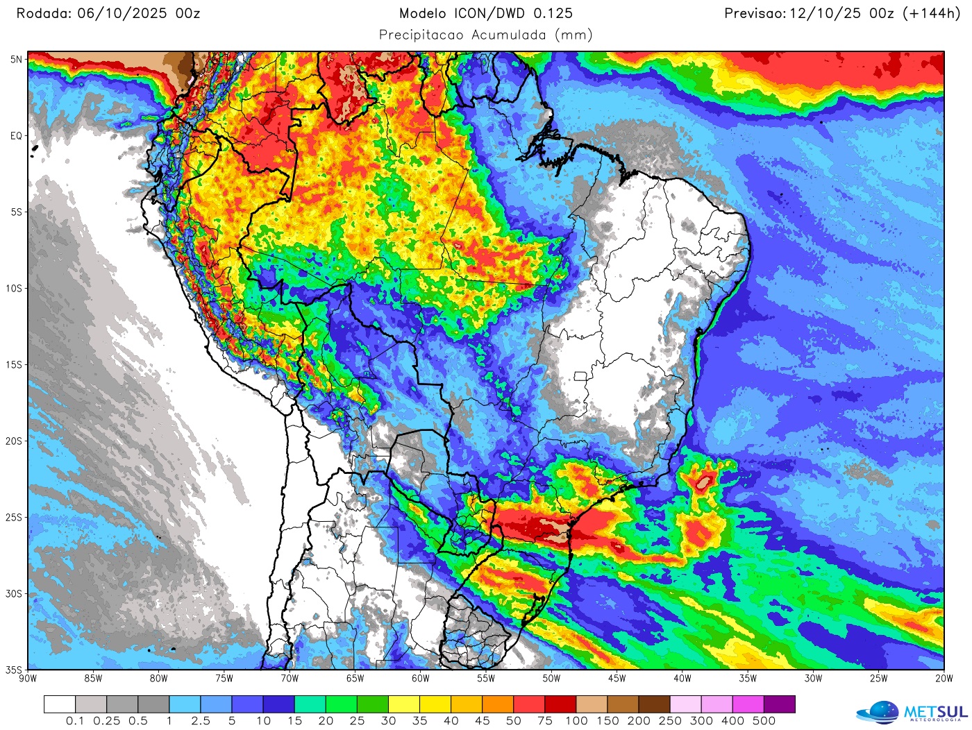Onde mais vai ter chuva no Brasil nesta semana? Conforme a análise da MetSul, deve chover com maiores volumes no Norte e no Sul do Brasil na semana que se inicia, até com volumes elevados em algumas cidades.