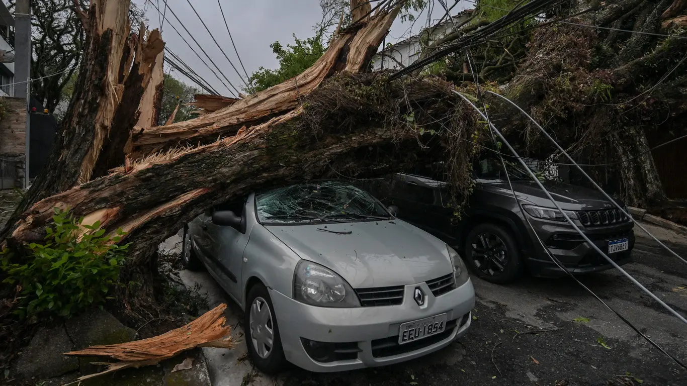 Vento associado ao ciclone pode trazer ocorrências de quedas de árvores nesta segunda-feira em São Paulo com cortes de luz em algumas áreas | NELSON ALMEIDA/AFP/METSUL