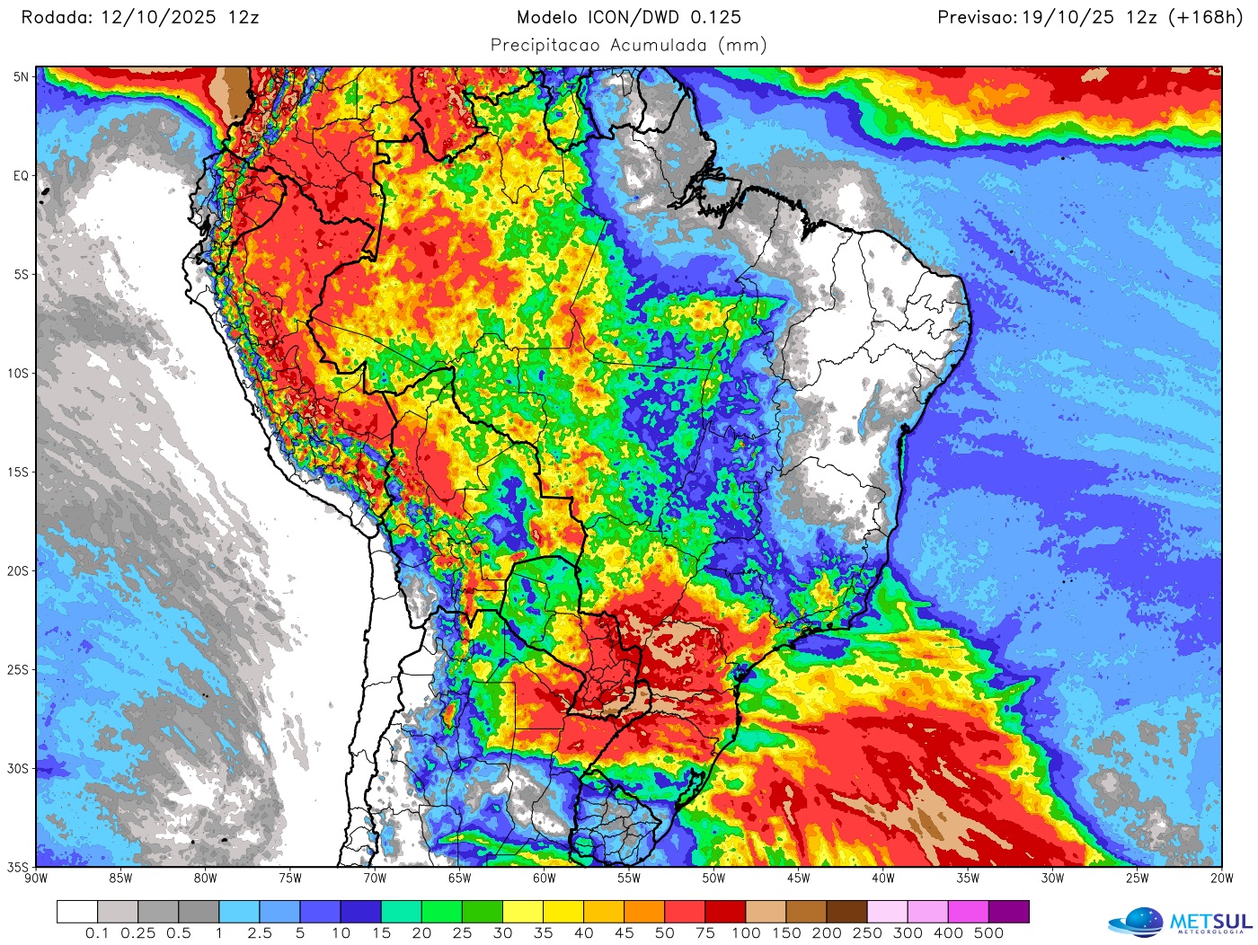 Onde mais vai ter chuva no Brasil nesta semana? Conforme a análise da MetSul, deve chover com volumes localmente altos no Norte, Centro-Oeste, Sudeste e Sul nesta semana, mas os maiores acumulados devem se dar no Sul.