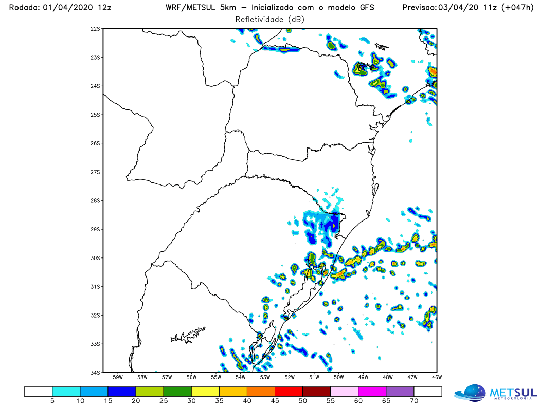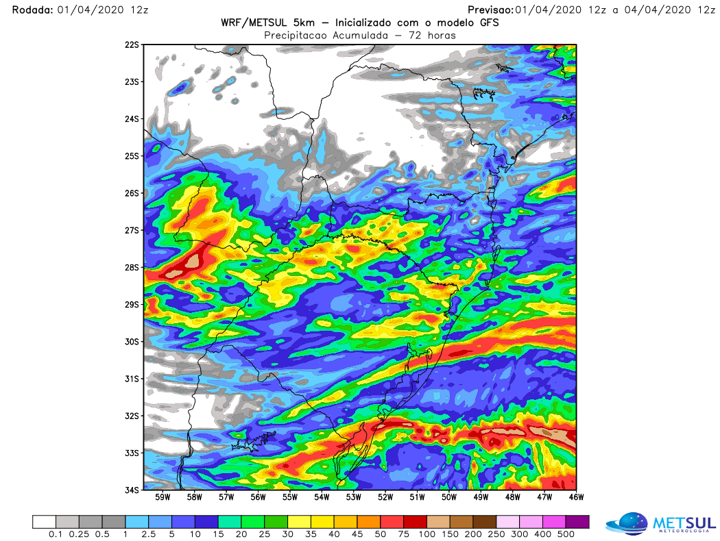 Com isso, algumas localidades podem ter volumes de chuva razoáveis de 30 mm a 50 mm ou mais nesta quinta, mas muitas outras devem ficar entre 10 mm e 20 mm. Por isso, a MetSul está a dizer que o impacto na estiagem não será significativo. O sistema trará chuva também para Santa Catarina e o Paraná no seu deslocamento pelo Sul do Brasil entre quinta e sexta-feira.