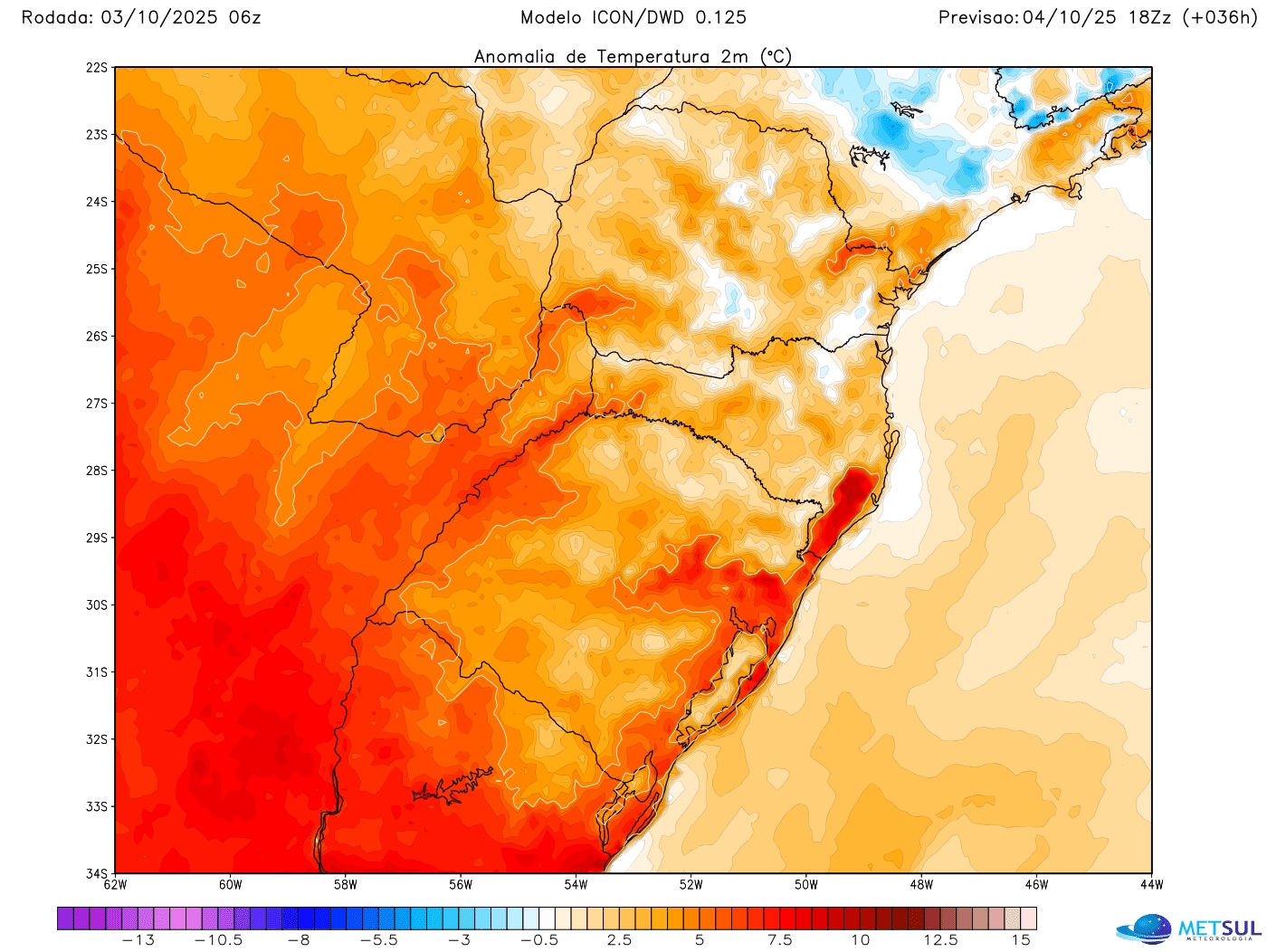 Porto Alegre pode ter marcas de até 34ºC ou mais enquanto em pontos da área metropolitana os termômetros podem indicar até 35ºC ou 36ºC. Mesmo na Serra se projeta calor com máximas acima de 30ºC em diversas cidades e registros de até 32ºC a 33ºC em alguns municípios serranos.