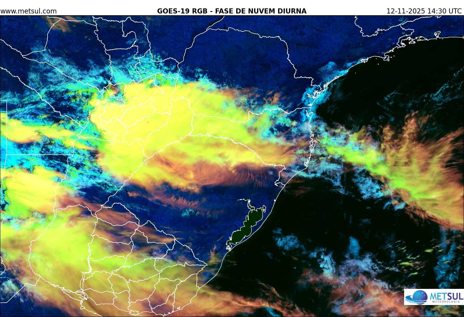 A instabilidade que está no Nordeste da Argentina, sobre a província de Misiones, deve se intensificar agora na segunda metade do dia, avançando para Norte e Nordeste com chuva e temporais em pontos de Santa Catarina e do Paraná. Ao mesmo tempo, novas áreas de instabilidade devem se formar nos dois estados pela convecção diurna.