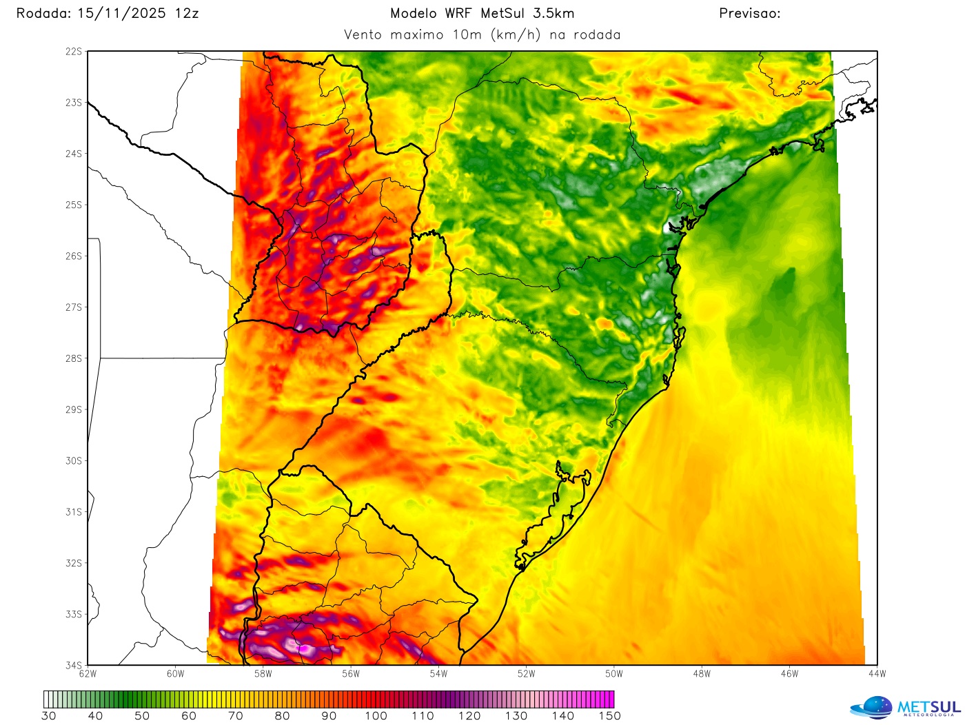 Modelos analisados pela MetSul Meteorologia indicam alto potencial de vendavais fortes e intensos, vários severos e com potencial destrutivo, com danos em diversos pontos do Centro-Sul do país.
