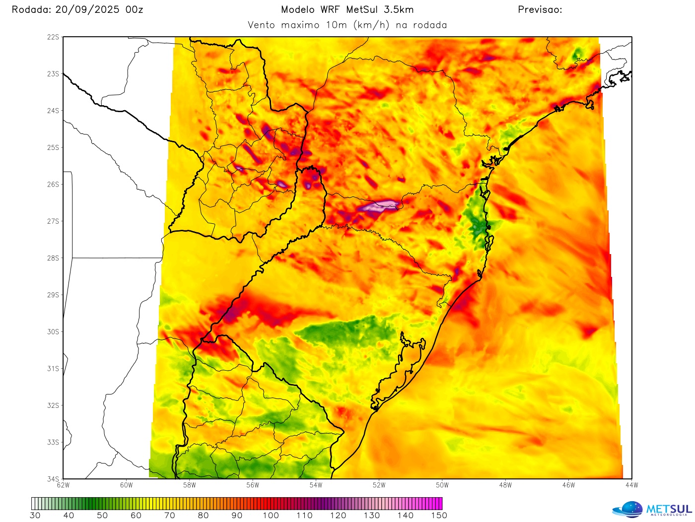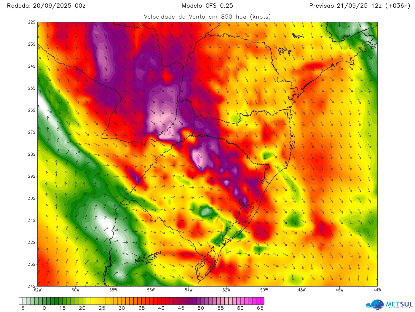 Conforme a nossa análise, o maior risco de vendavais se concentrará na Metade Norte do Rio Grande do Sul, em Santa Catarina, Paraná, Mato Grosso do Sul e São Paulo, mas vendavais mais isolados e localmente fortes a severos podem atingir ainda setores do Mato Grosso, Goiás, Minas Gerais e Rio de Janeiro.