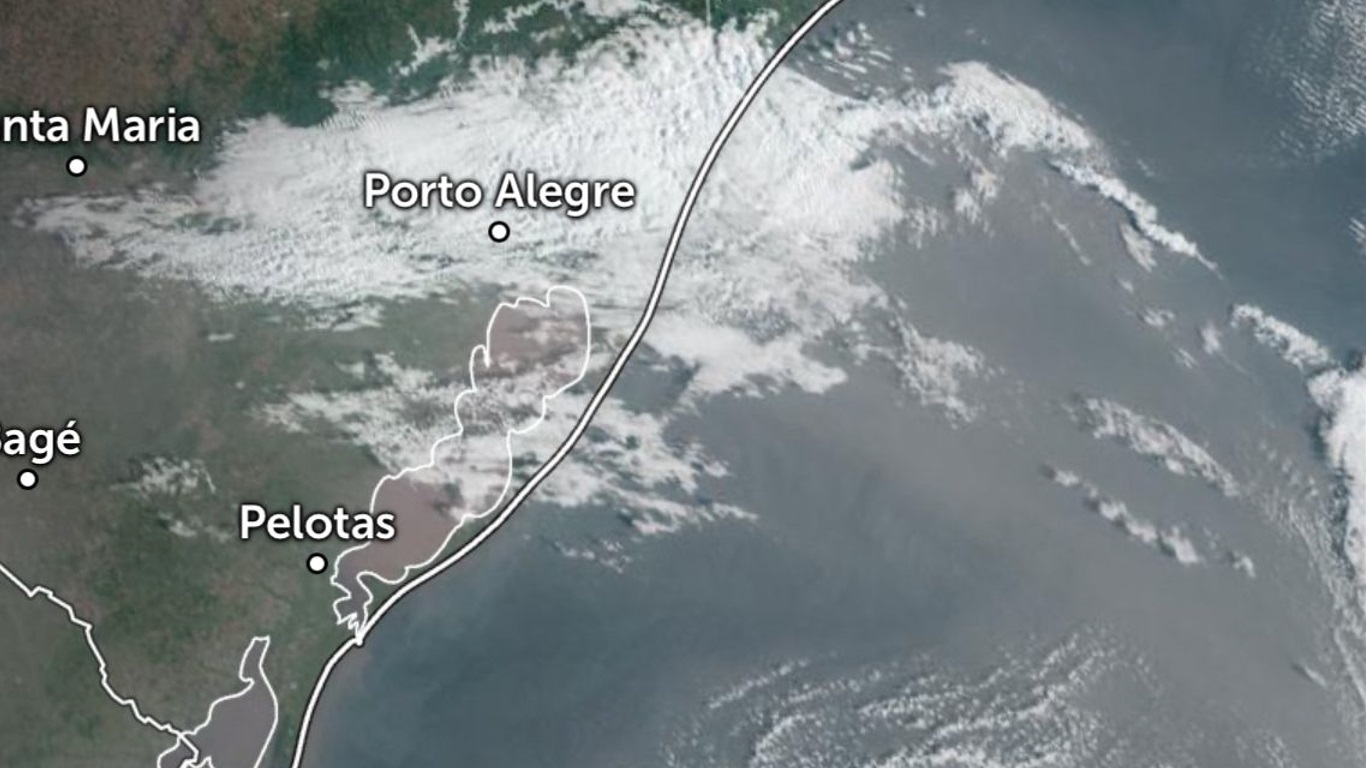 Uma extensa nuvem de poeira gerada por ventos extremos na Patagônia argentina NA segunda-feira (17) por um ciclone que atuava no começo da semana na região avançou pelo Leste da Argentina, atingiu o Uruguai e chegou à costa do Sul do Brasil com muito baixa densidade.