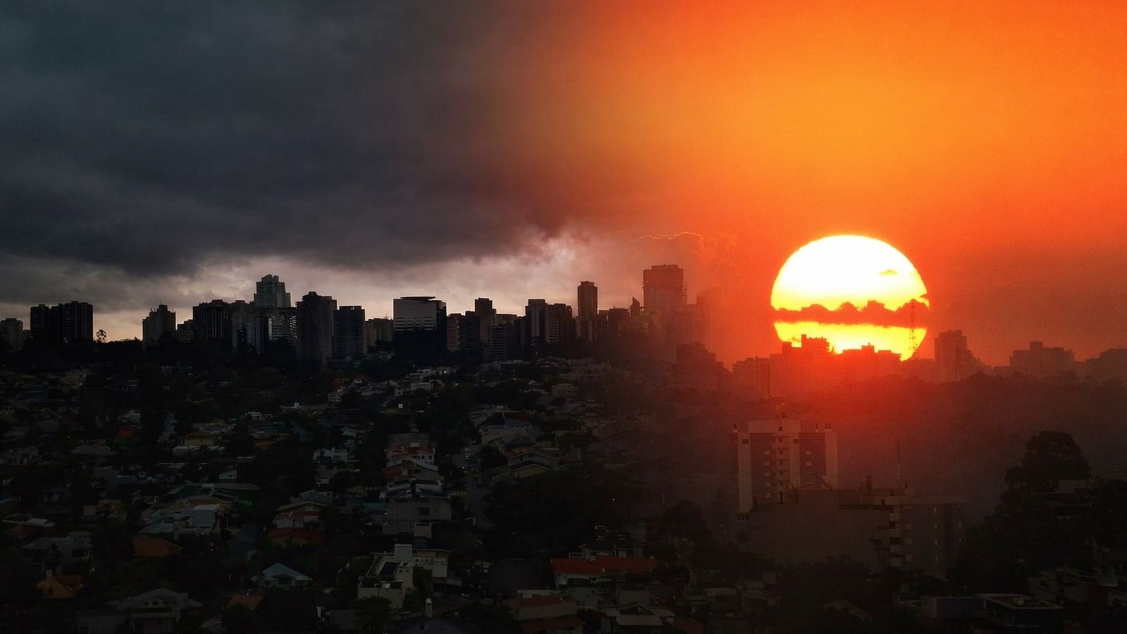 Grande contraste no tempo nesta quarta-feira (4) entre o Sul e o Centro do Brasil com chuva em excesso em alguns estados e calor excessivo em outros com uma onda de calor que persiste, prevê a MetSul Meteorologia.
