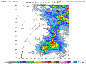 Sob este cenário, é possível que ocorram alagamentos e inundações com risco ainda de deslizamentos de terra e encostas com queda de barreiras em regiões de Serra. O risco é especialmente maior em pontos do Leste de Santa Catarina.