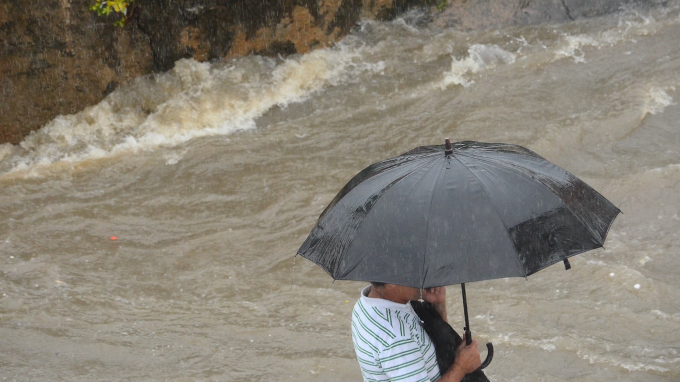 Os estados com maior risco de volumes elevados de chuva entre hoje e a primeira metade da próxima semana são Mato Grosso do Sul, Goiás, São Paulo, Minas Gerais e Rio de Janeiro. No Sul, o risco maior fica para o Leste do Paraná e o Leste e Nordeste de Santa Catarina.