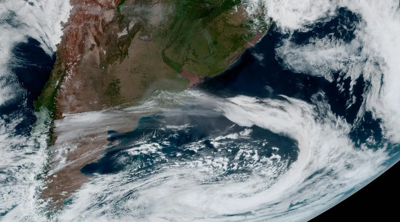 Ciclone poderoso no Sul do continente e que ontem (17) estava sobre o Sul da Argentina gerou uma enorme nuvem de poeira que na manhã desta terça (18) havia avançado para Norte, transportada por correntes de vento.