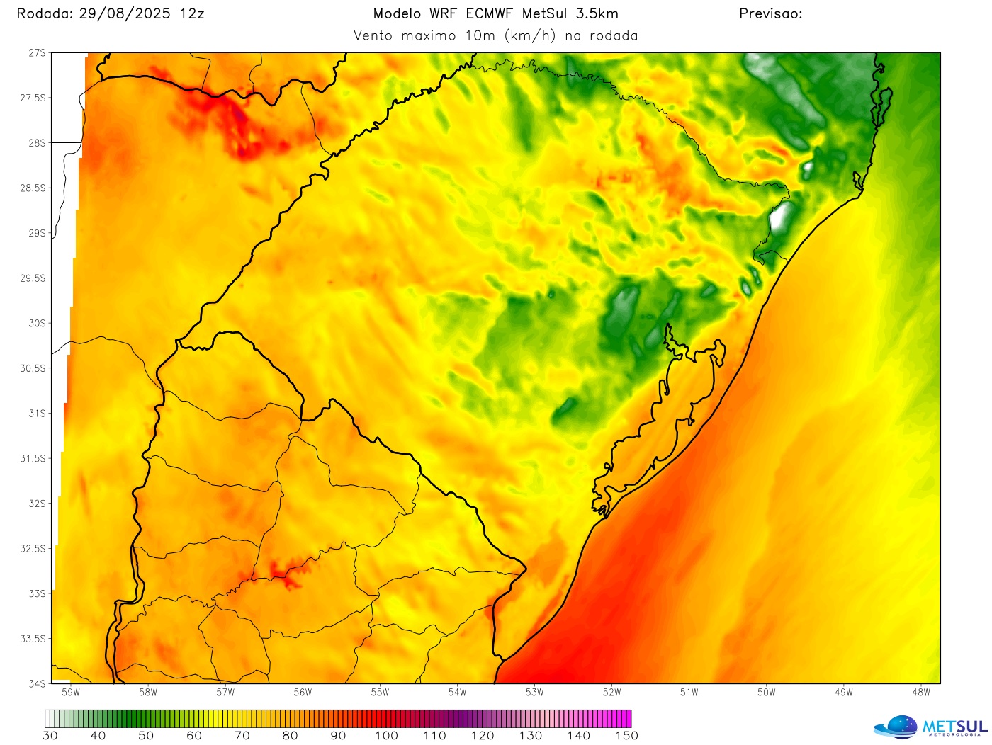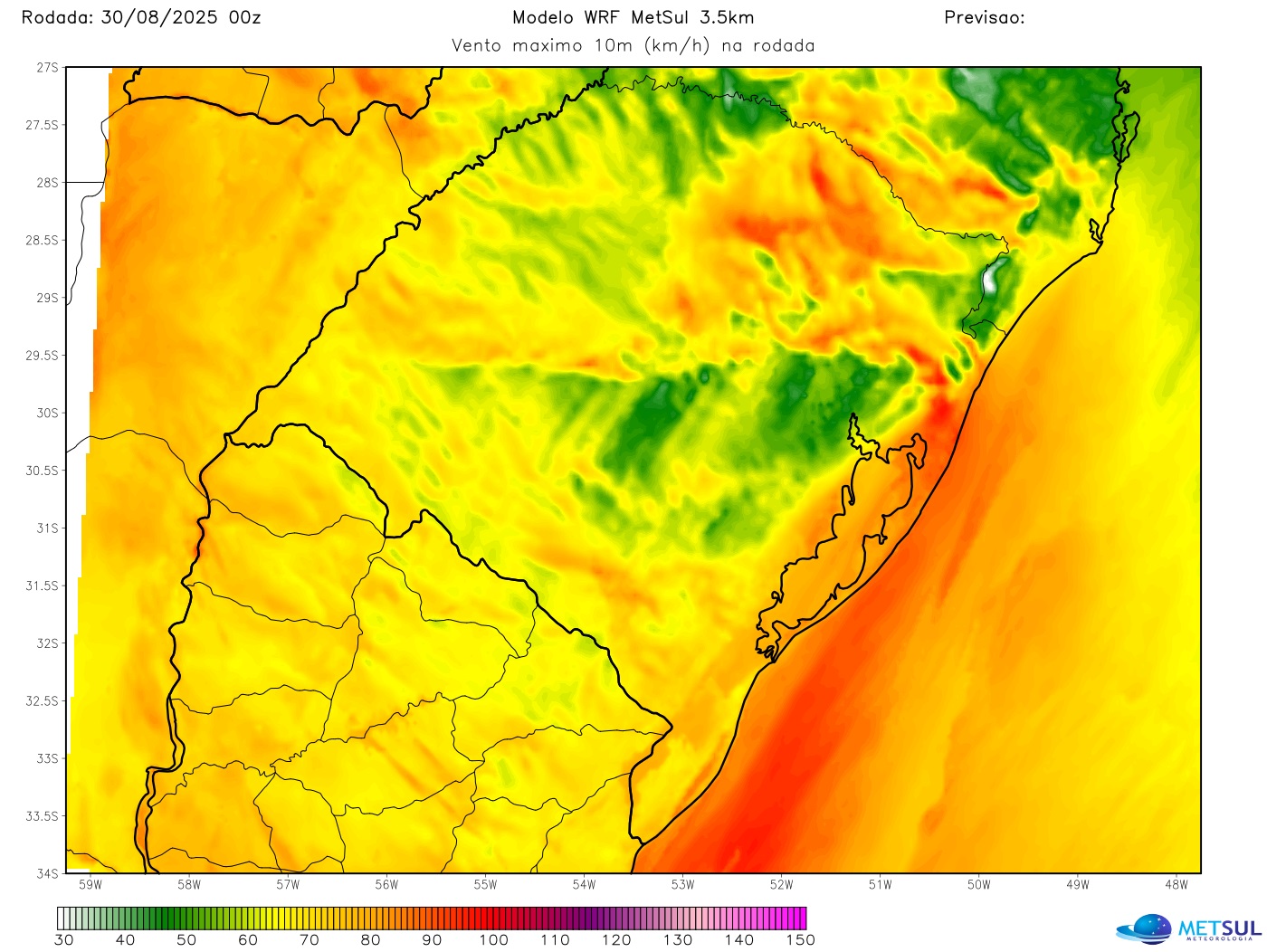 Projeção de vento máximo do modelo WRF-GFS | METSUL