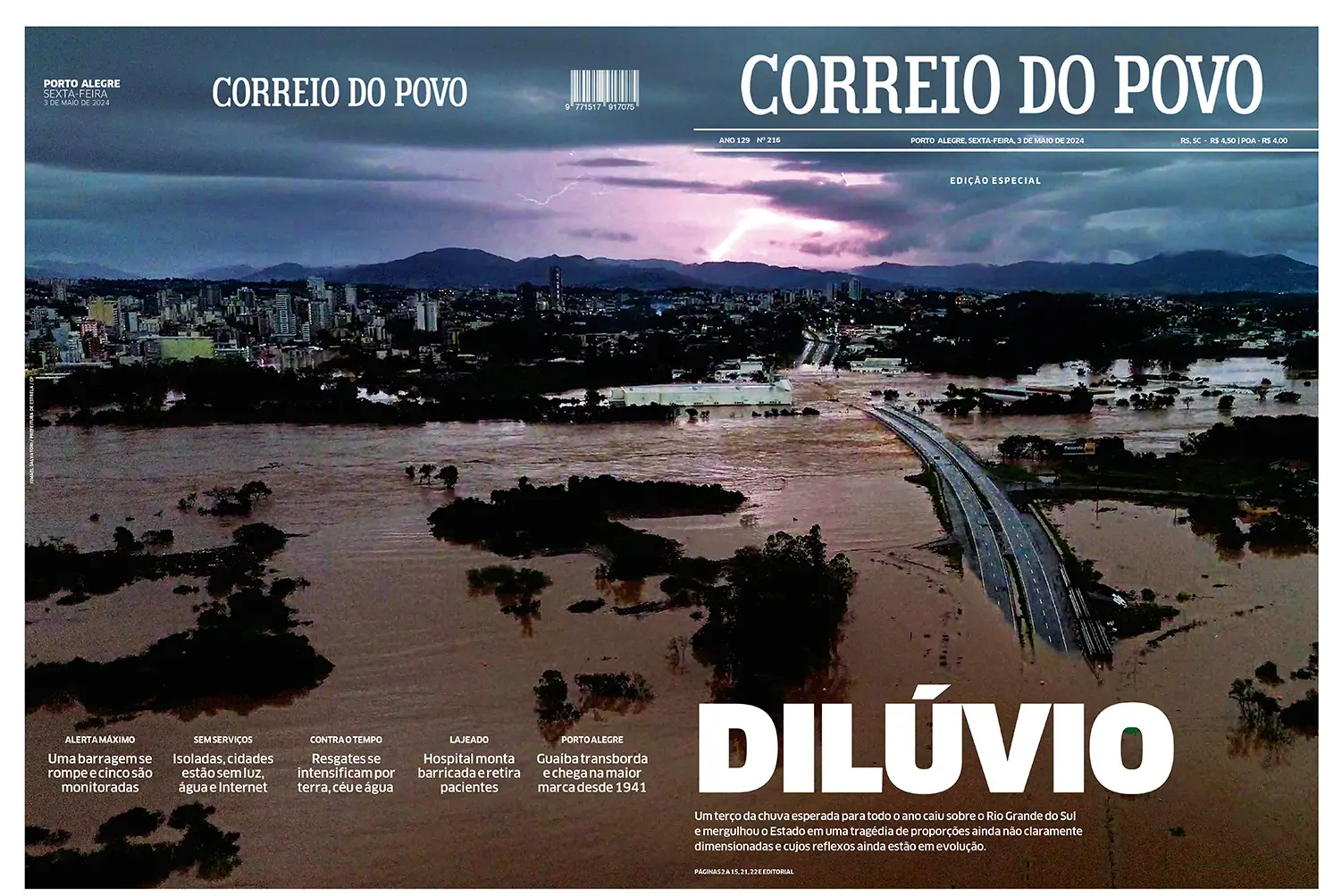 Capa do jornal Correio do Povo de Porto Alegre na enchente de 2024 | REPRODUÇÃO