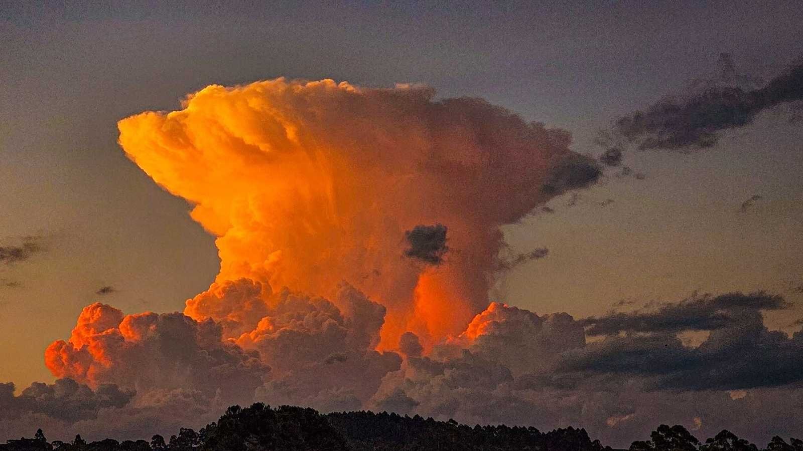 À medida que esse ar quente sobe, ele se expande e esfria, fazendo com que o vapor d’água nele contido se condense e forme nuvens. Quando a convecção é intensa, o movimento vertical do ar pode gerar nuvens muito altas com chuva forte e temporais.