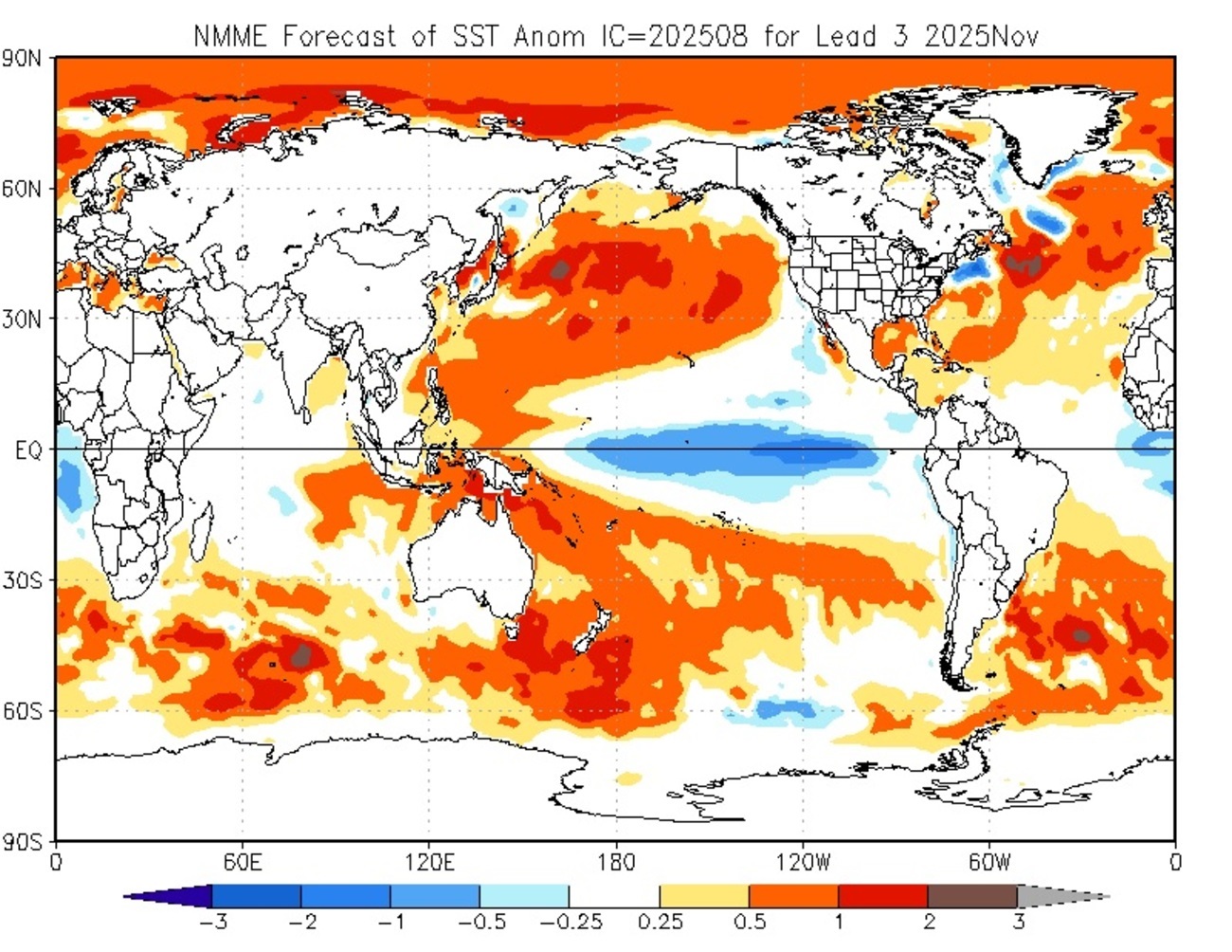 A última vez em que o Oceano Pacifico Equatorial Central não apresentou uma anomalia semanal em neutralidade foi na primeira semana de fevereiro, no final do episódio de La Niña de 2024-2025.