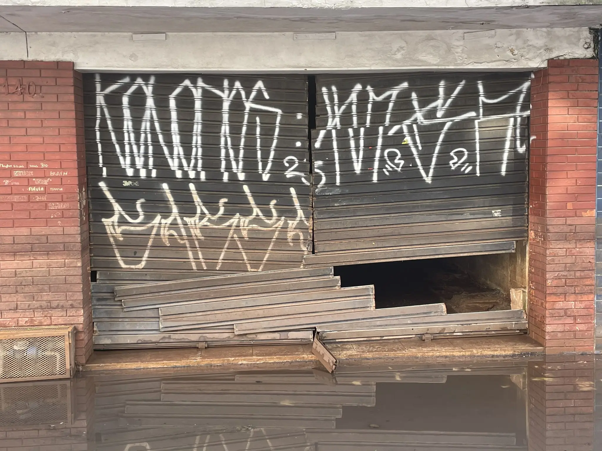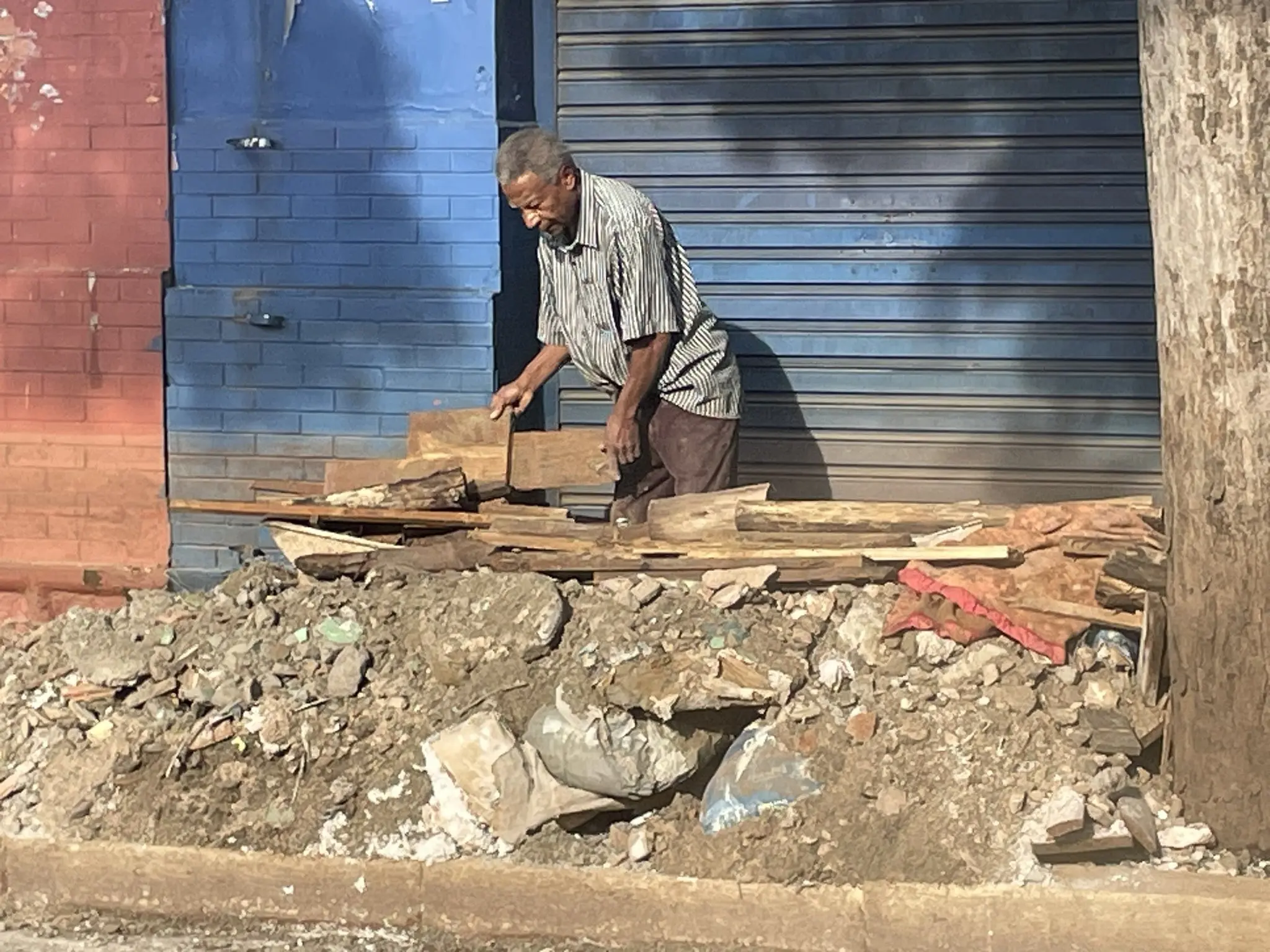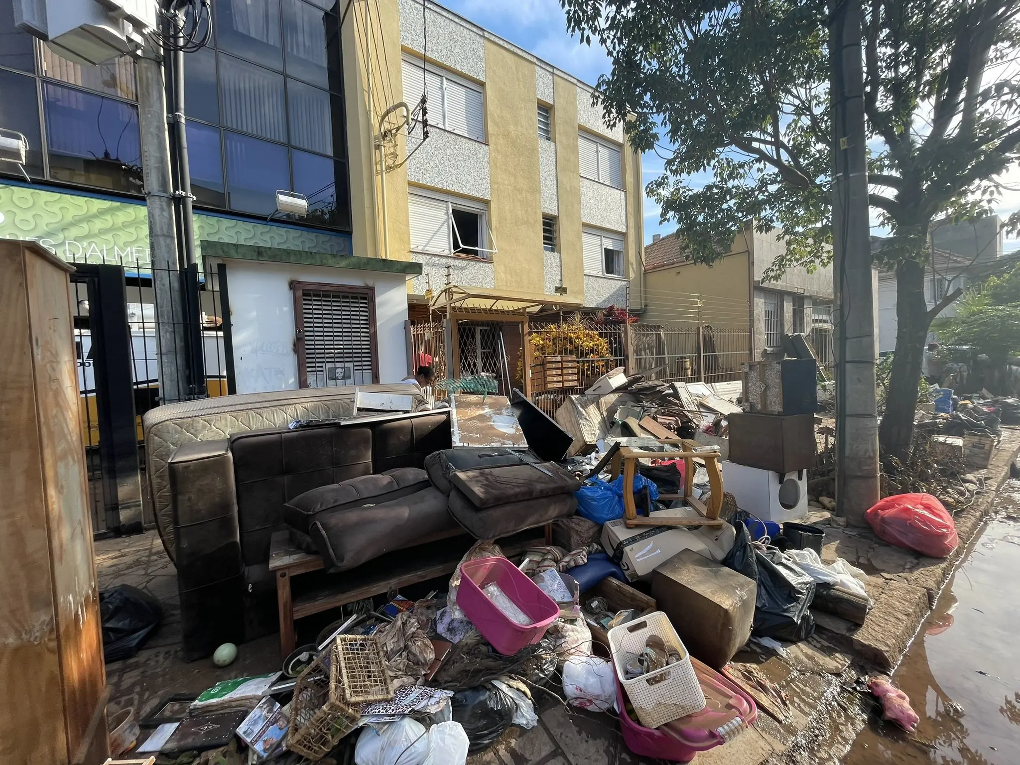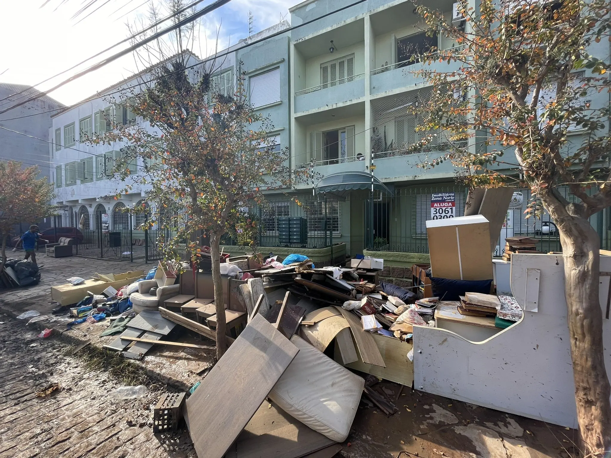 Na rua, em frente a prédios vizinhos da escola, grande quantidade de destroços podia ser vista. Eram móveis, colchões e utensílios domésticos perdidos na inundação de casas e apartamentos de andares térreos de edifícios.