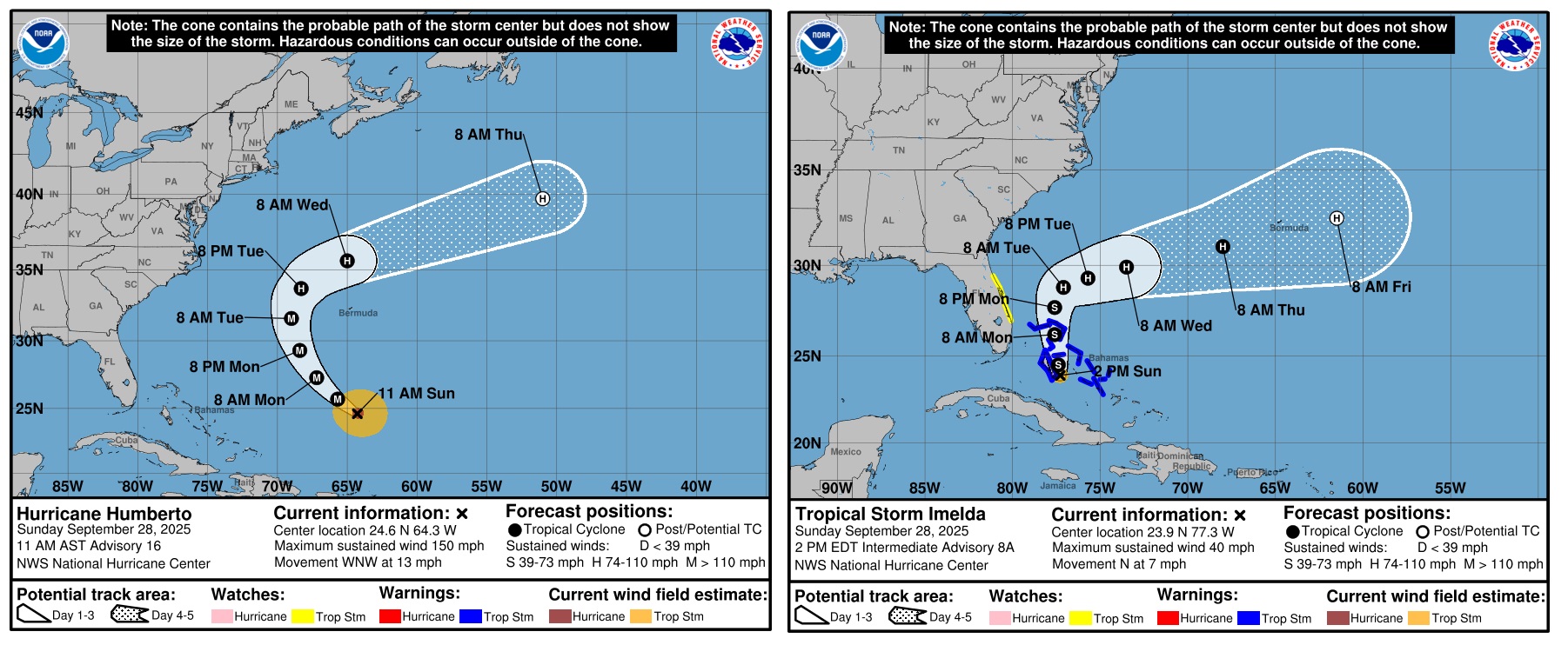 Trajetórias previstas para Humberto e Imelda | NHC/NOAA