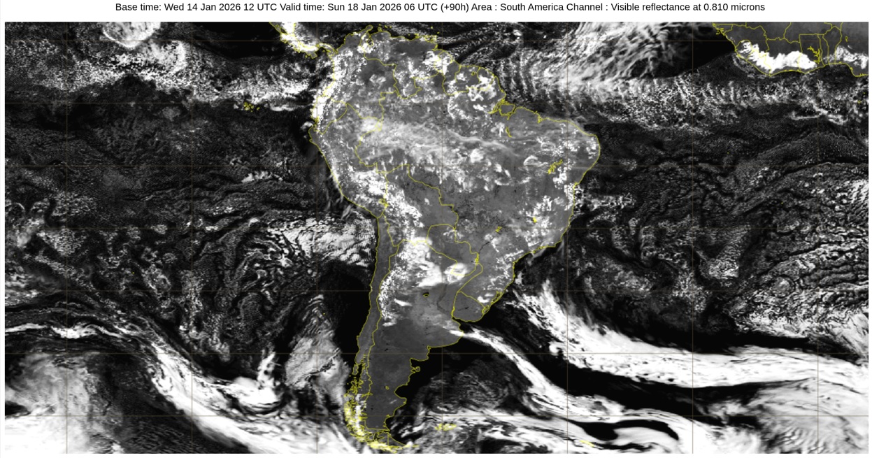 Este segundo sistema frontal vai se acoplar à primeira frente, semi-estacionária sobre o Sul do Brasil, causando chuva especialmente entre a Metade Norte gaúcha e o Paraná no domingo e parte da segunda-feira.