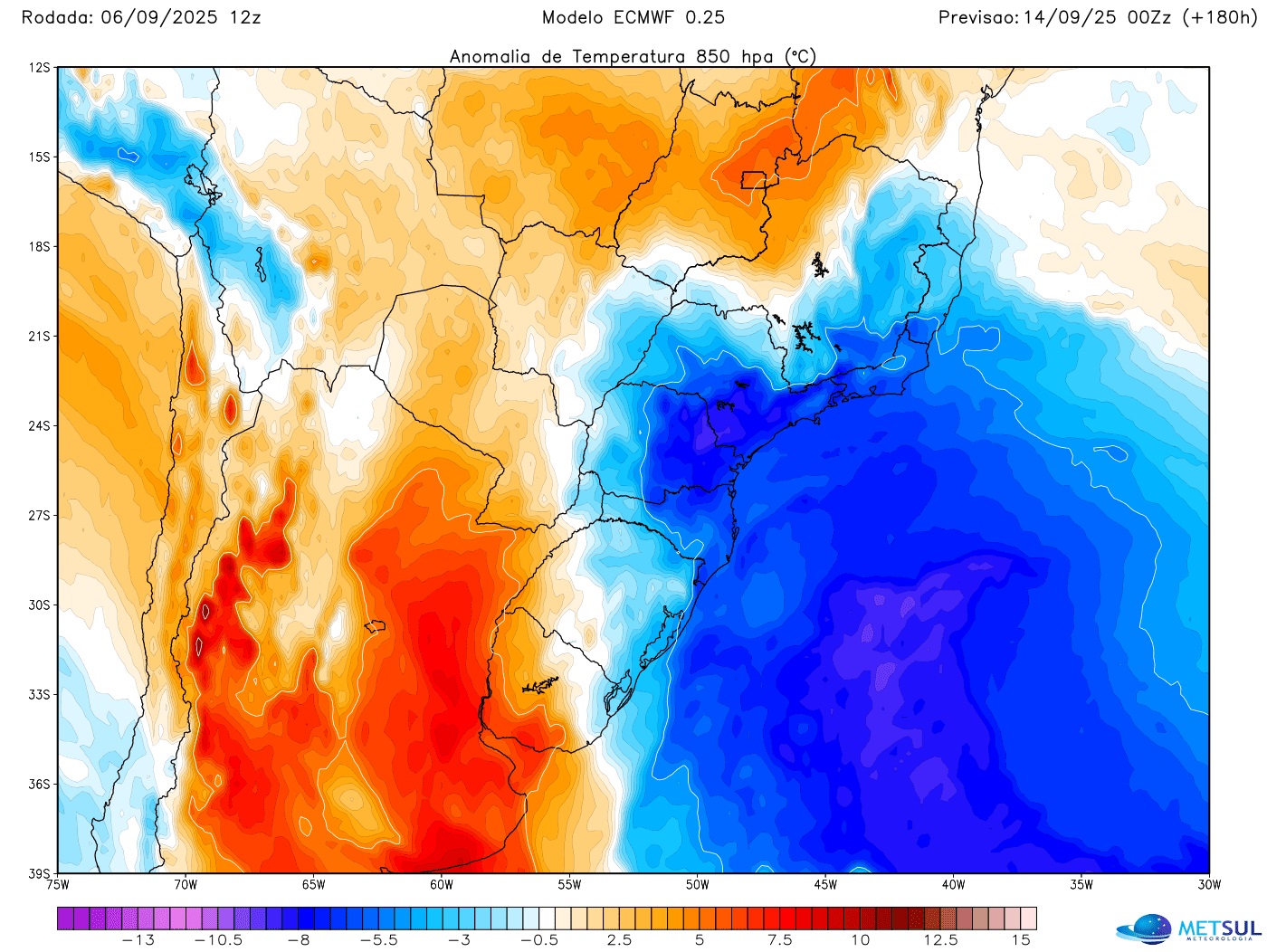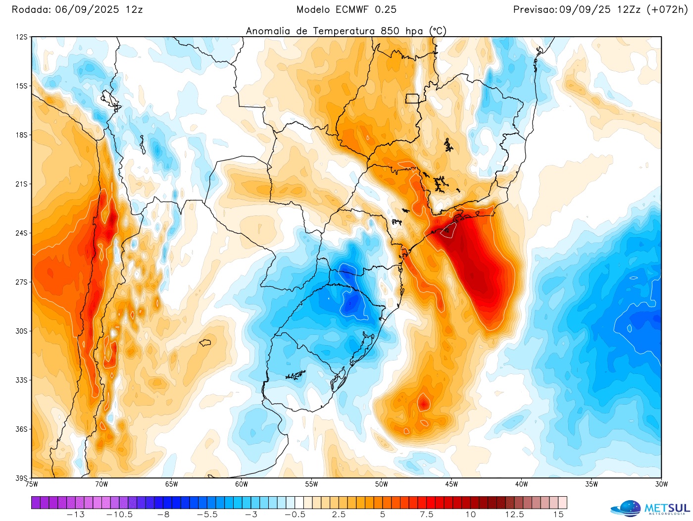 Primeira incursão de ar frio na terça após a primeira frente fria se limitará ao Sul do Brasil e será muito modesta sem grande resfriamento | METSUL