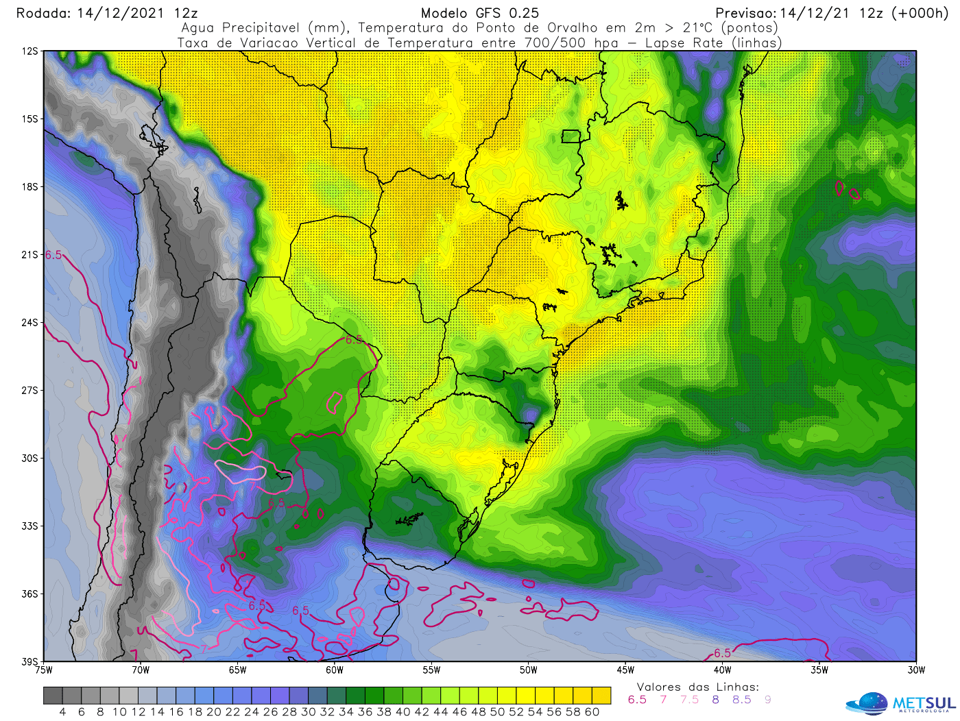 O modelo norte-americano GFS registrava que a área atingida era a que tinha maiores índices de vapor d´água na atmosfera em todo o Rio Grande do Sul.