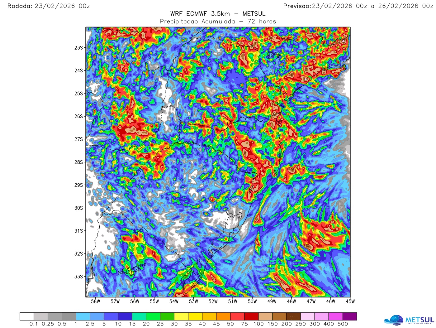 Chove na quarta-feira mais em horas da tarde para a noite, sobretudo em pontos do Leste e do Nordeste do Rio Grande do Sul, de Santa Catarina e do Paraná com os mais altos volumes no Leste catarinense.