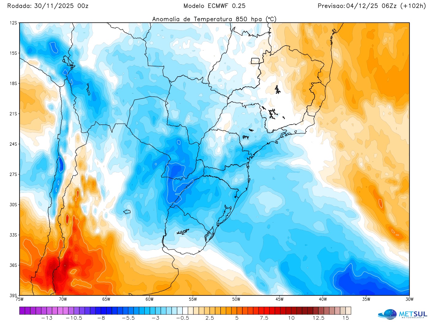 Esta frente fria não deve trazer uma grande onda de temporais, mas ao avançar sobre uma massa de ar quente vai estimular convecção mais profunda isolada com potencial para temporais isolados, alguns fortes com vendavais e queda de granizo. O ingresso de ar mais frio em altitude (que não significa frio em superfície) vai encerrar com o período de calor excessivo e gerar movimentos convectivos na atmosfera que levarão aos temporais isolados.