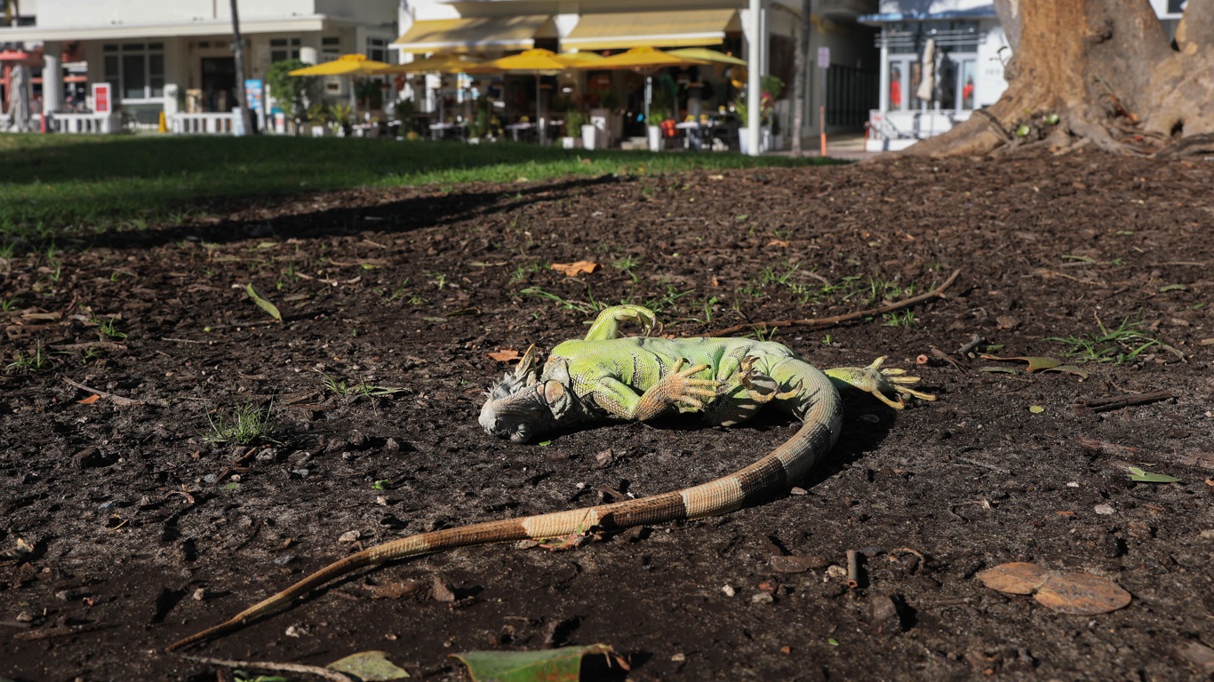 Uma onda de frio incomum na Flórida transformou as ruas, quintais e canais do estado em um cenário inesperado: iguanas verdes invasoras, paralisadas pelo frio, despencando das árvores. Com as temperaturas caindo para a casa dos 40 graus Fahrenheit (cerca de 4°C a 9°C), os répteis de sangue frio tiveram o sistema nervoso temporariamente desligado, entrando em um estado de imobilidade.