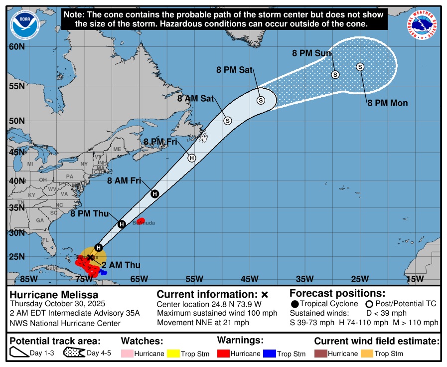 Ontem, Melissa cruzou pelo Oriente de Cuba e tocou terra pela segunda vez como um furacão de categoria 3, depois rebaixado. Atingiu Santiago de Cuba, a segunda maior cidades da ilha cubana.