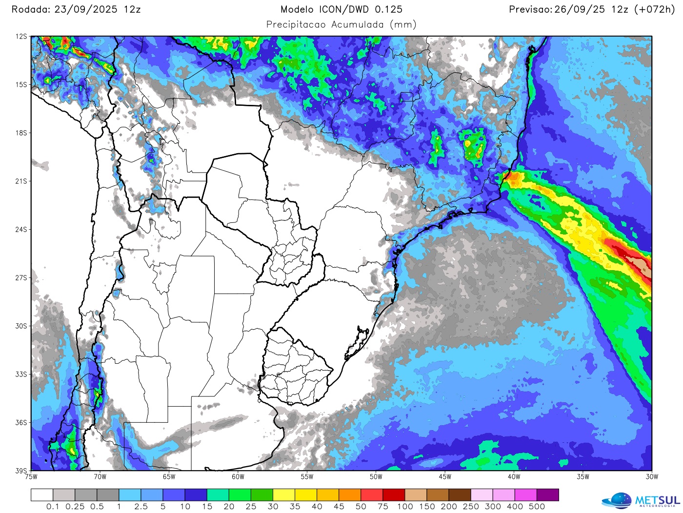 Por isso, áreas costeiras entre Santa Catarina e o Rio de Janeiro terão períodos com muitas nuvens, garoa e chuva nos próximos dias. A circulação marítima trará ainda momentos com maior nebulosidade no Litoral Norte gaúcho entre Capão da Canoa e Torres, com precipitação, se ocorrer, apenas isolada e mais perto dos morros.