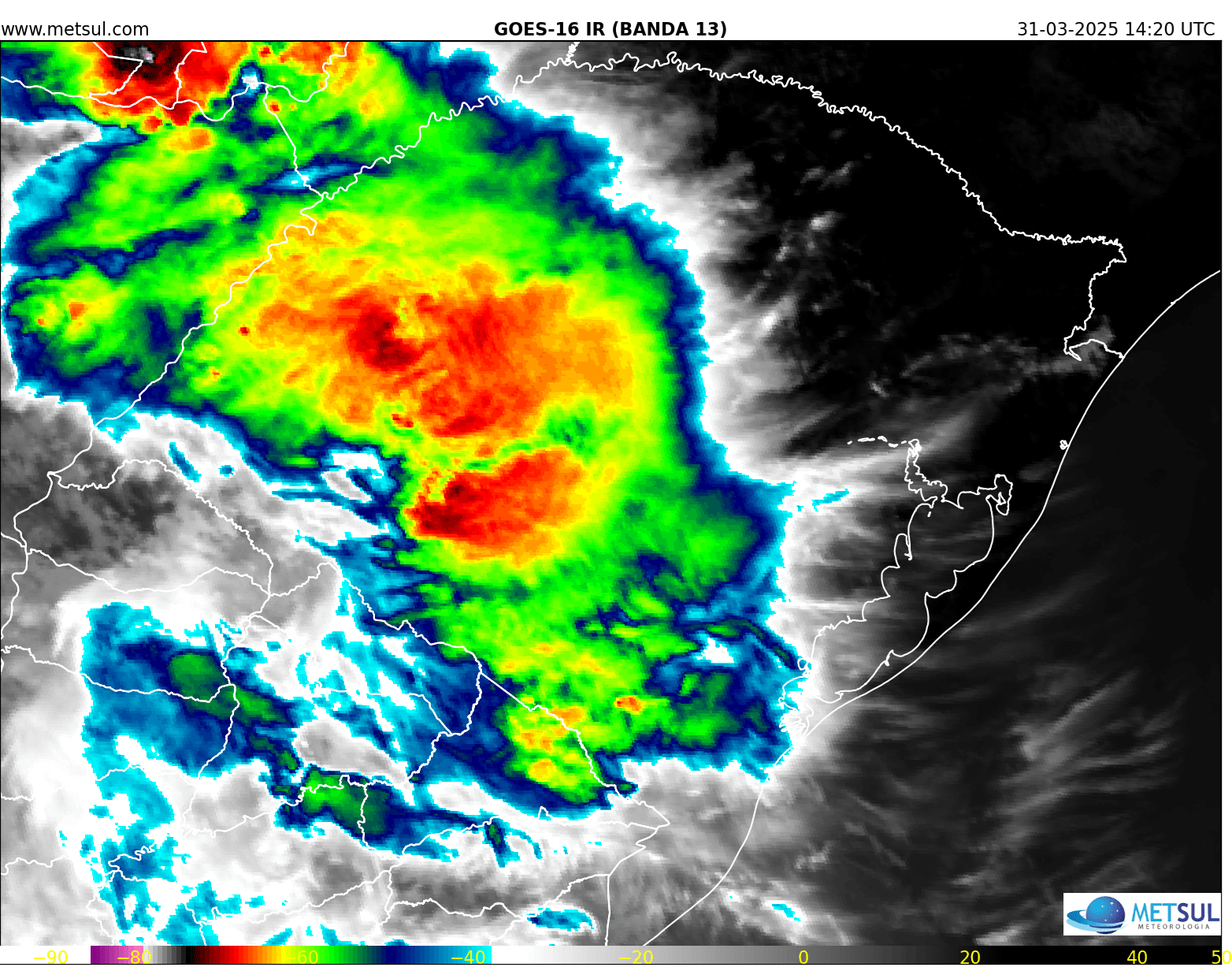 O avanço da instabilidade sobre o ar quente poderá gerar intensificação da chuva e elevar o risco de temporais ao passar pelos vales, Grande Porto Alegre, Litoral e Serra. Como resultado poderá ocorrer chuva forte a torrencial localizada e não se afasta a ocorrência de temporais isolados com raios, rajadas de vento e granizo pontual. Há potencial para transtornos.