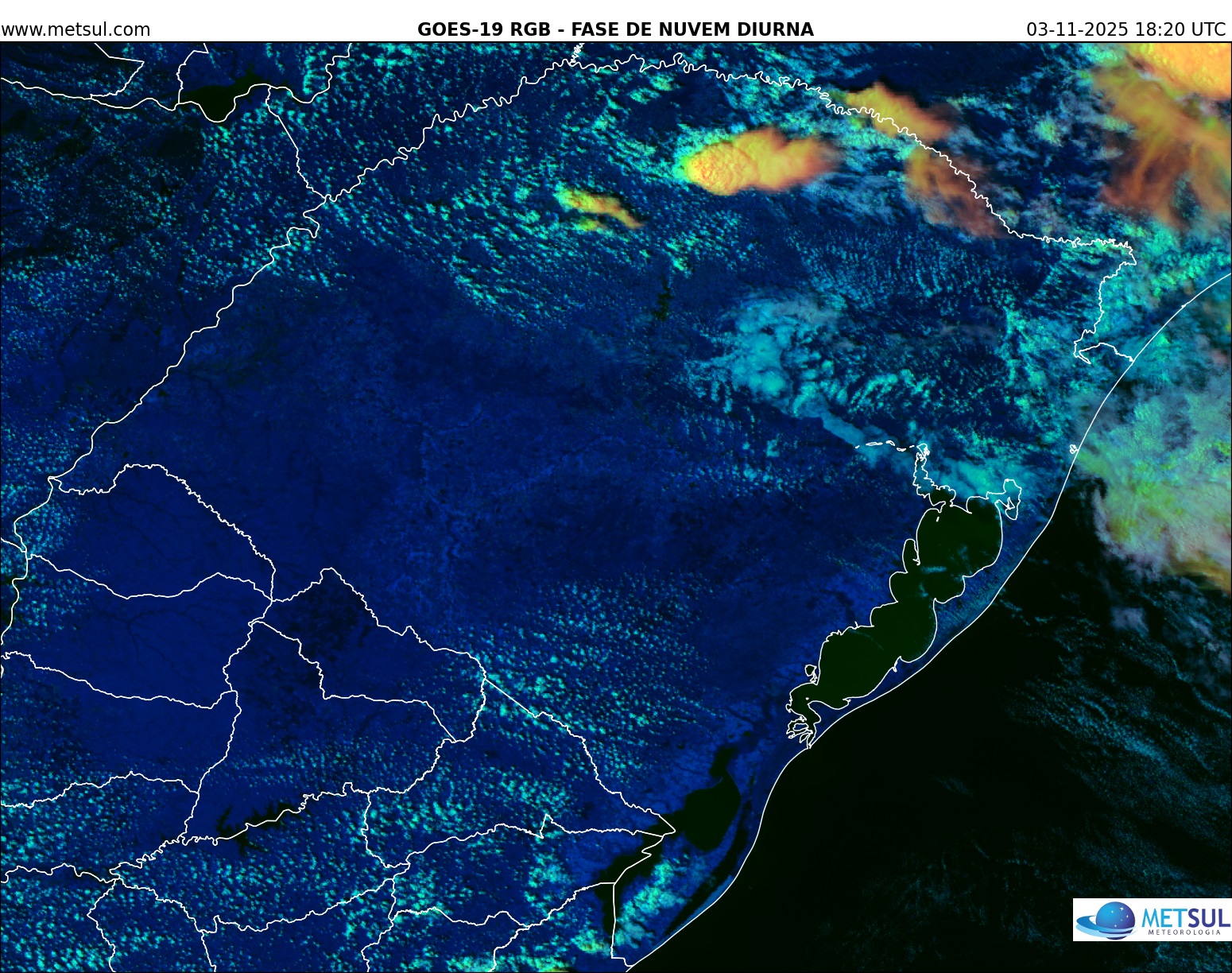Imagem do satélite GOES-19 do meio da tarde mostra que tempestade que atingiu Sarandi na tarde de hoje foi muito localizada | METSUL