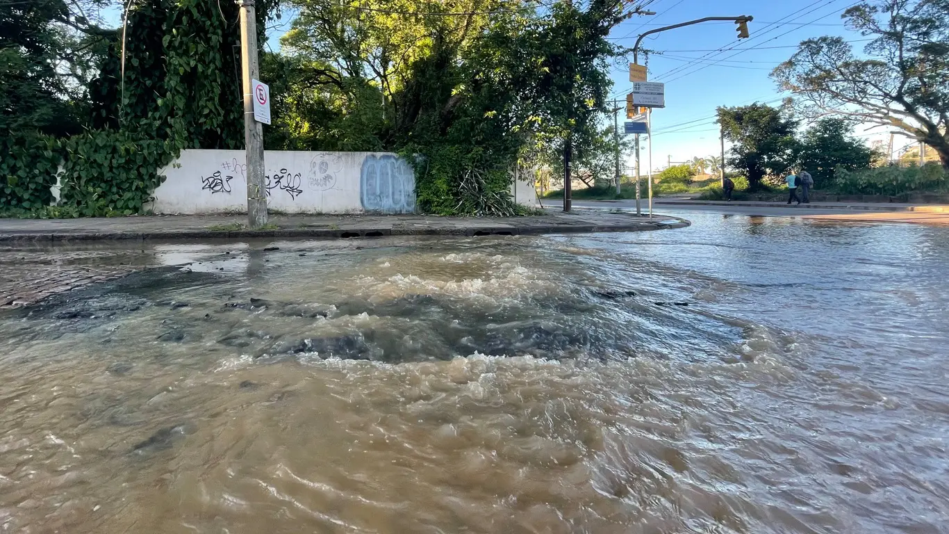 Assim como em setembro, grande quantidade de água do Guaíba estava saindo por um bueiro localizado na esquina da Polônia com a Voluntários da Pátria, em frente à estação São Pedro do Trensurb. A quantidade de água era tão grande sendo expelida pelo bueiro que chegou a levar o asfalto da via.