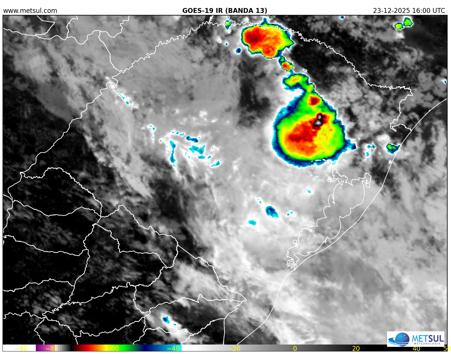 Na tarde de ontem, com o calor e umidade elevadíssima, um núcleo intenso de instabilidade se formou ainda no final da manhã na região do Alto Jacuí com chuva forte a torrencial nas regiões de Cruz Alta e Soledade, migrando na sequência para a Serra Gaúcha, onde na área de Farroupilha se formou uma pequena célula de tempestade severa que trouxe o tornado.