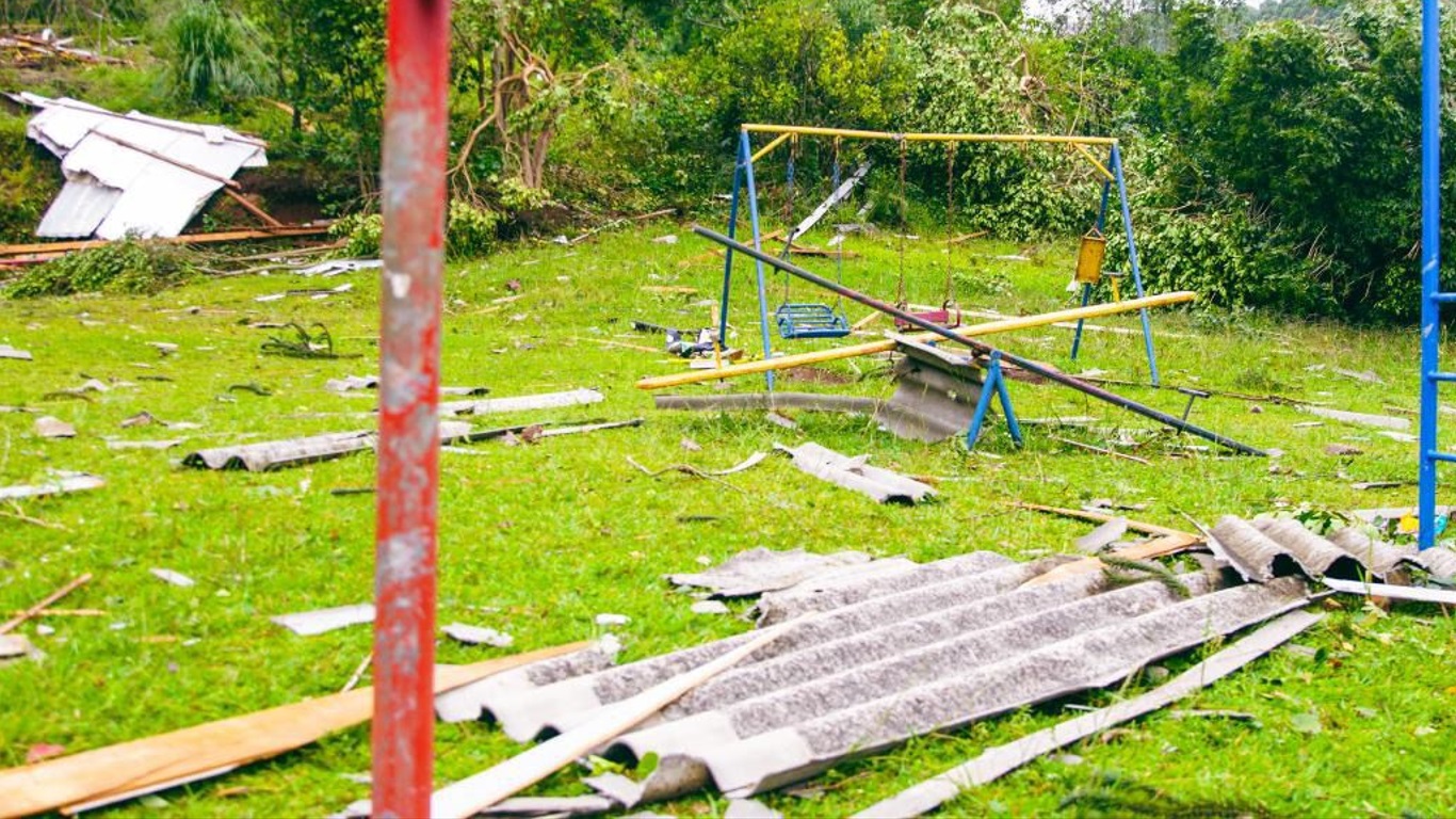 O fenômeno, associado a temporal severo isolado com chuva intensa e ventos extremamente fortes, provocou um cenário de destruição, com casas destelhadas, escola danificada, queda de postes e árvores arrancadas.