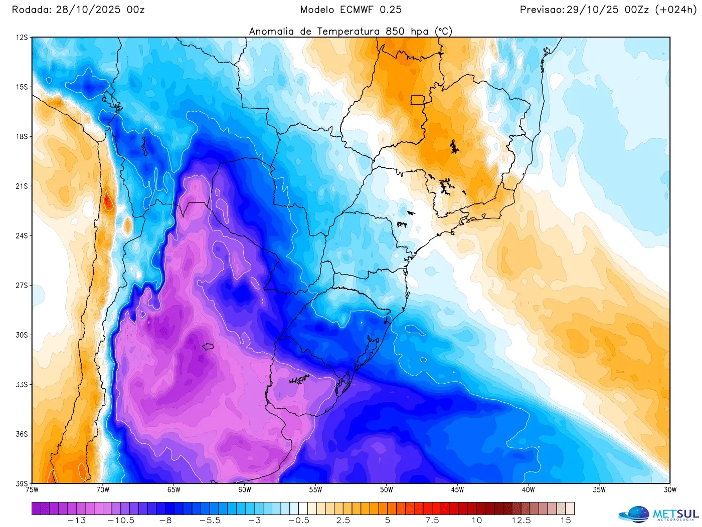 Forte massa de ar frio da Argentina já ingressa no Sul do Brasil | METSUL