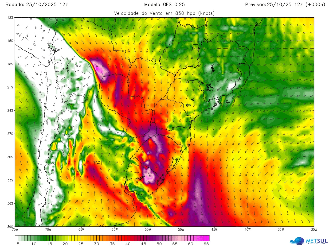 Corrente de jato em baixos níveis provocou vento forte hoje no Rio Grande do Sul | METSUL