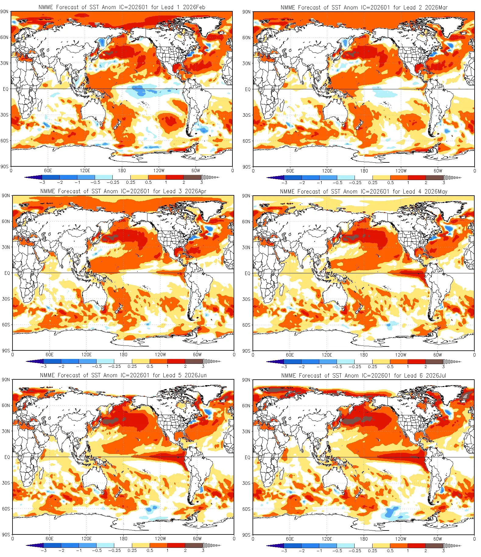 Modelos de clima NMME projeta acentuado aquecimento do Pacífico Equatorial entre o outono e o inverno com a instalação de um episódio de El Niño | NOAA