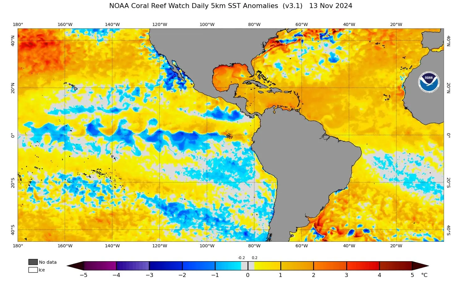 Today, according to the latest bulletin from the National Oceanic and Atmospheric Administration (NOAA) of the United States, published earlier this week, the sea surface temperature anomaly in the Central-Eastern Equatorial Pacific (Niño 3.4 region) is at -0.3ºC.