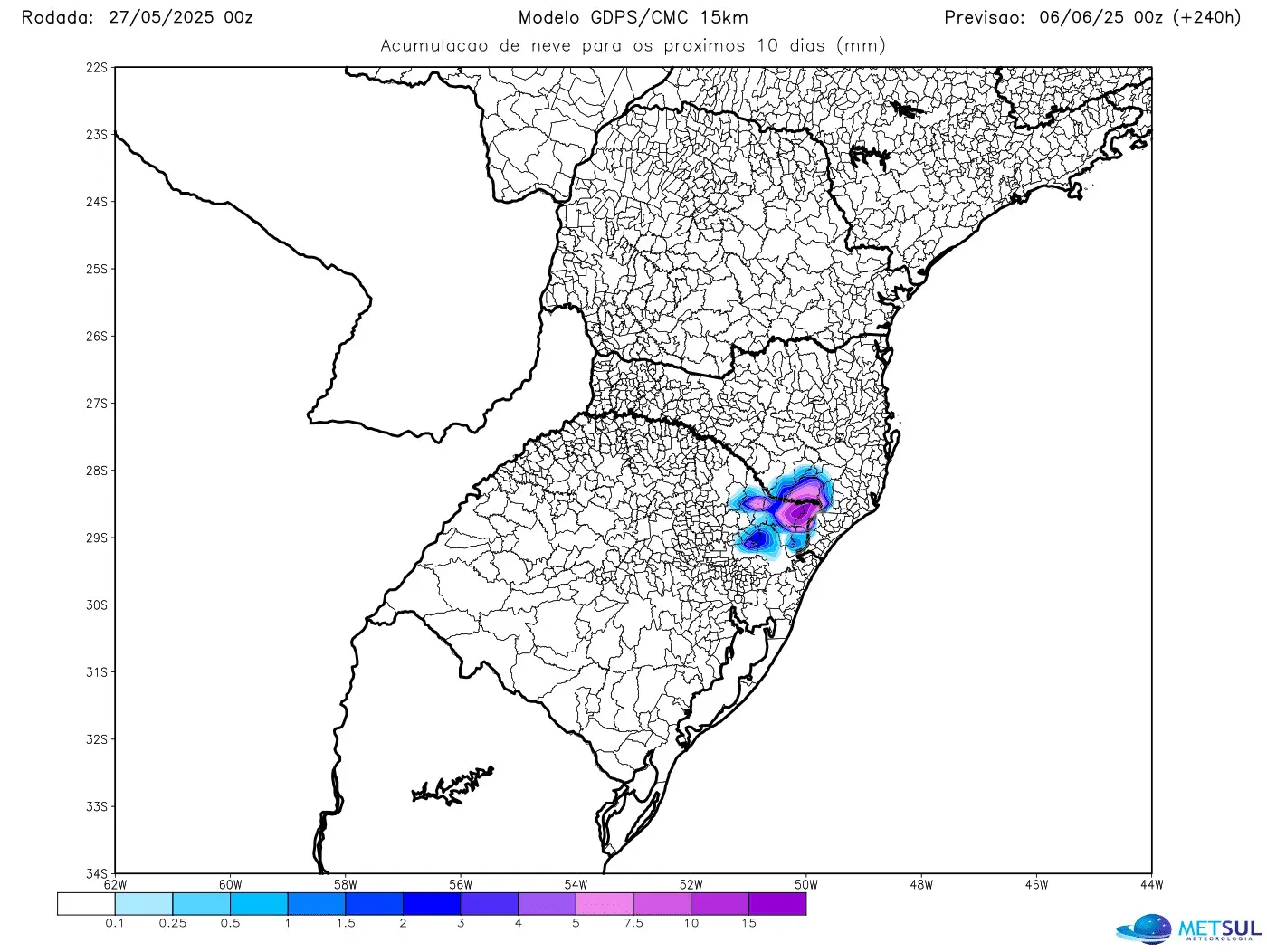 Projeção de neve acumulada do modelo canadense | METSUL