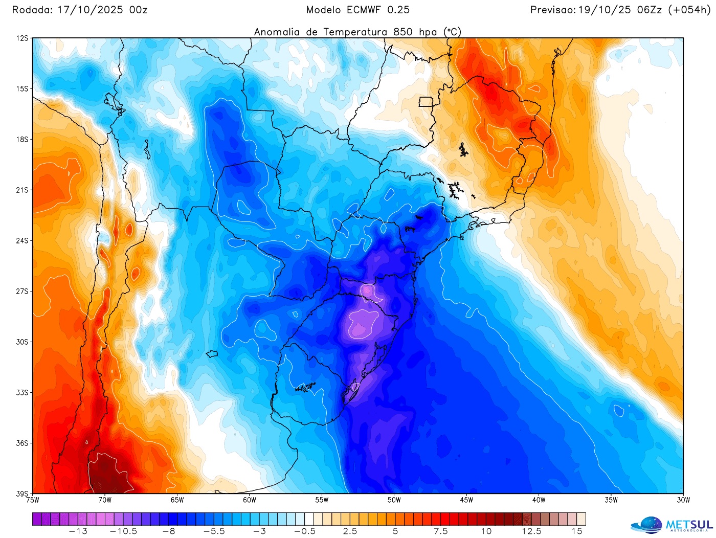 Observamos que não chega a ser anormal que ingressem massas de ar frio tardias na metade ou na segunda quinzena de outubro, especialmente com o Pacífico Equatorial mais frio do que a média no momento, mas incursões de ar frio nesta época do ano tendem a ser menos frequentes.