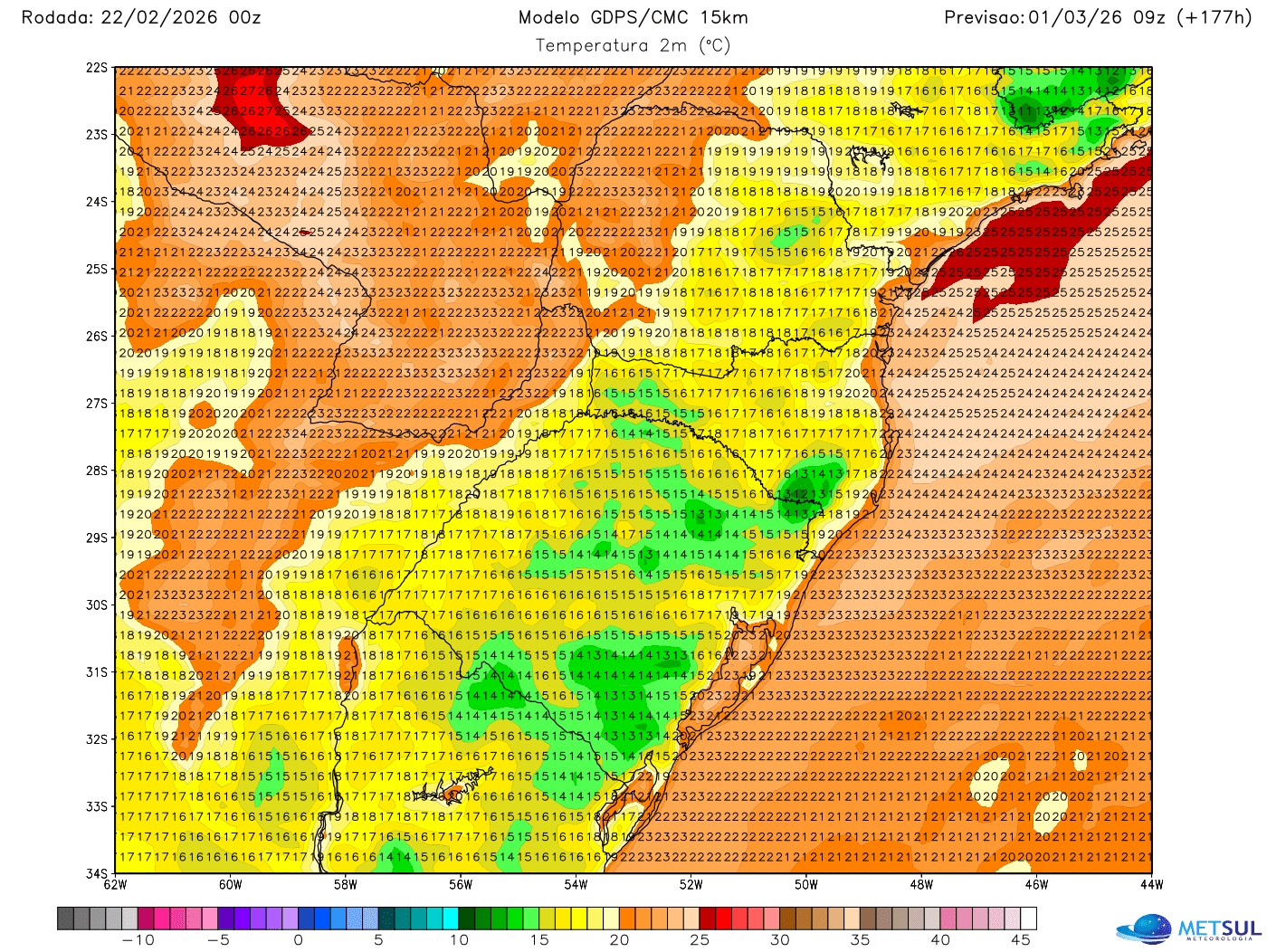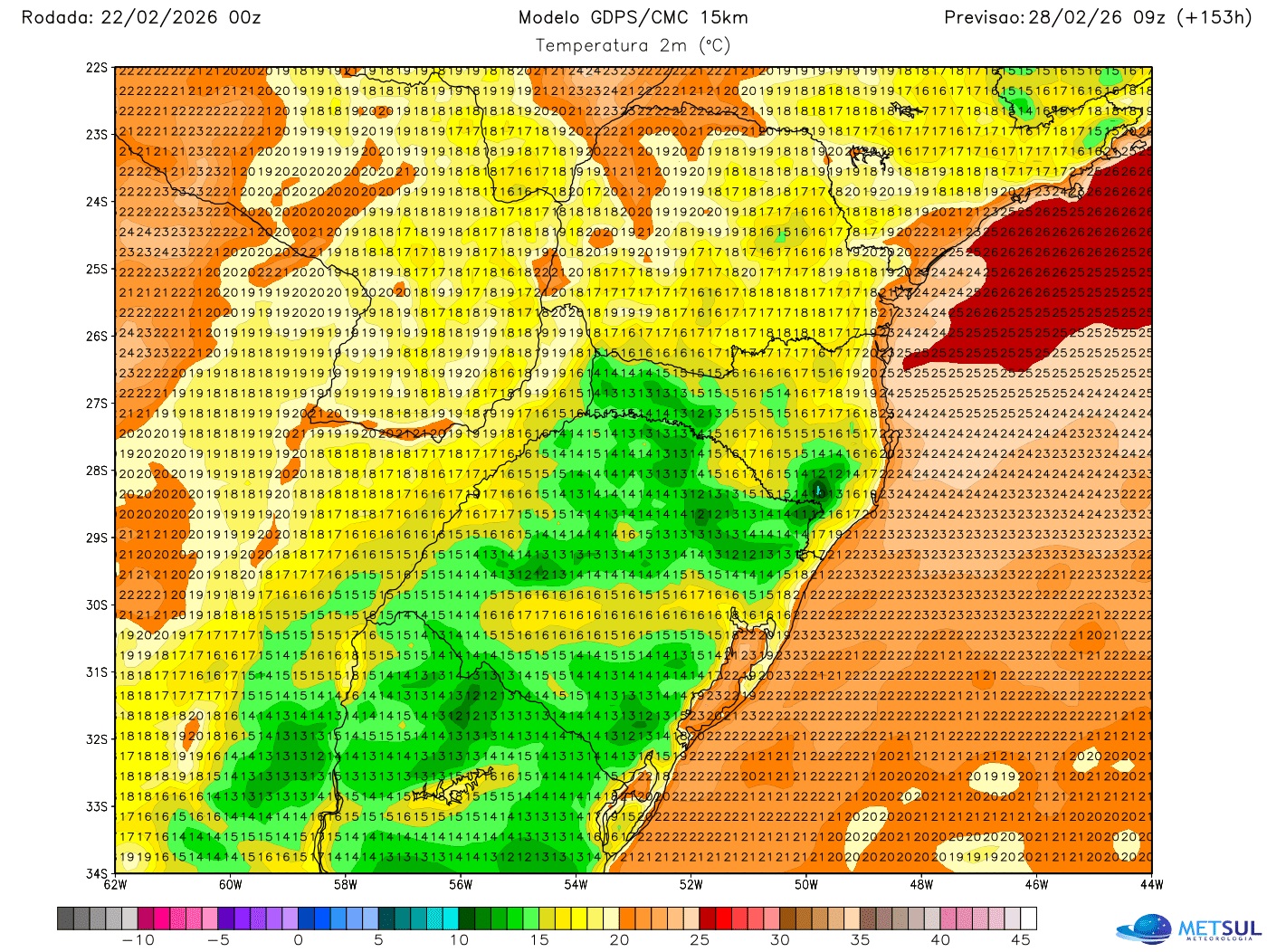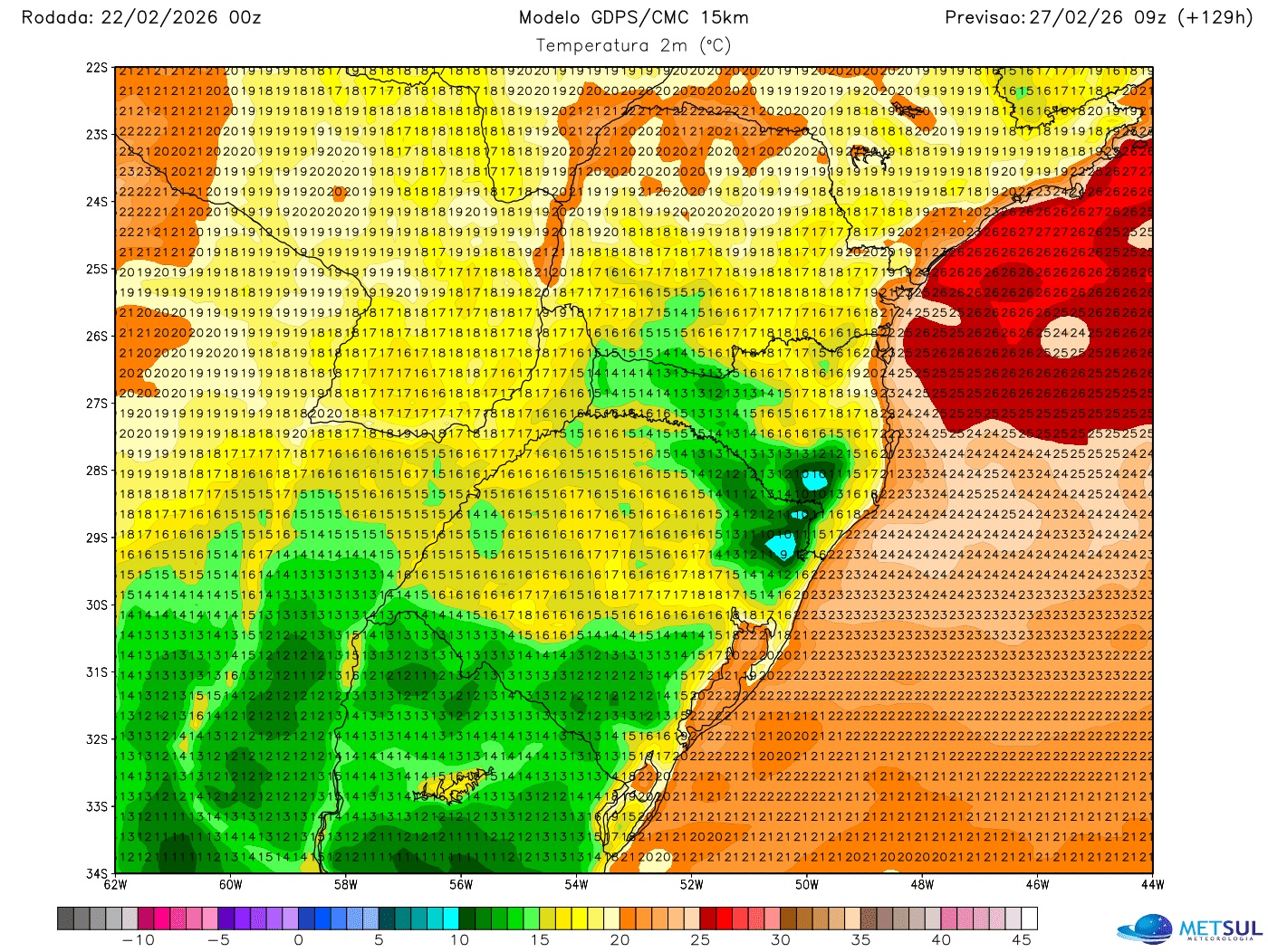 As madrugadas de menor temperatura devem ser as de sexta (27) e do próximo fim de semana, quando a maioria das cidades gaúchas deve ter mínimas ao redor e abaixo dos 15ºC. Na Campanha, fronteira com o Uruguai e no Sul gaúcho os termômetros podem indicar 10ºC a 13ºC. Nos Aparados da Serra e Planalto Sul Catarinense, as mínimas vão cair abaixo de 10ºC em algumas localidades.