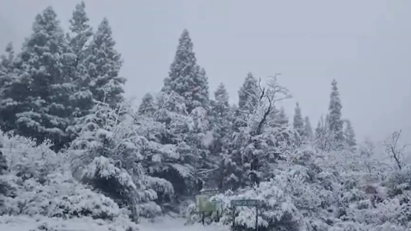 Nesta sexta-feira, a cidade de Esquel amanheceu com chuva e nuvens baixas que impediam a visão das montanhas. As áreas mais altas de Esquel amanheceram cobertas de neve, oferecendo uma paisagem incomum para dezembro com toda a vegetação coberta de neve em cenas que mais recordam o inverno.