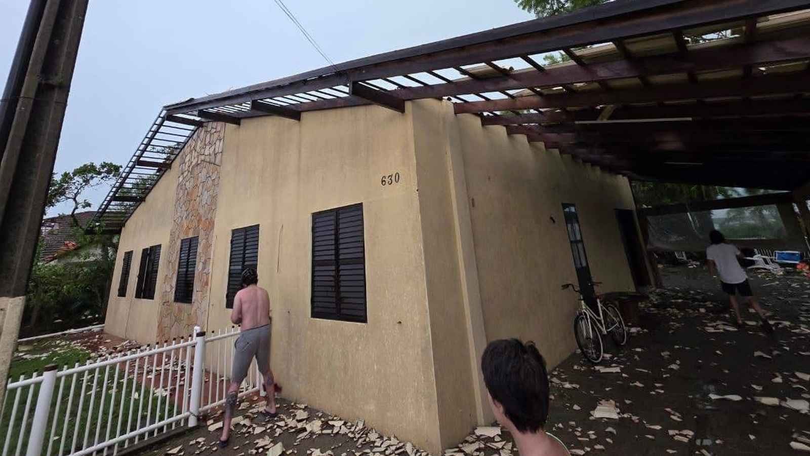 Imagens registradas no local mostram a intensidade do temporal, com estruturas danificadas, telhas espalhadas e sinais de destruição. O cenário chamou atenção pela rapidez com que o tempo mudou e pela violência da ventania.