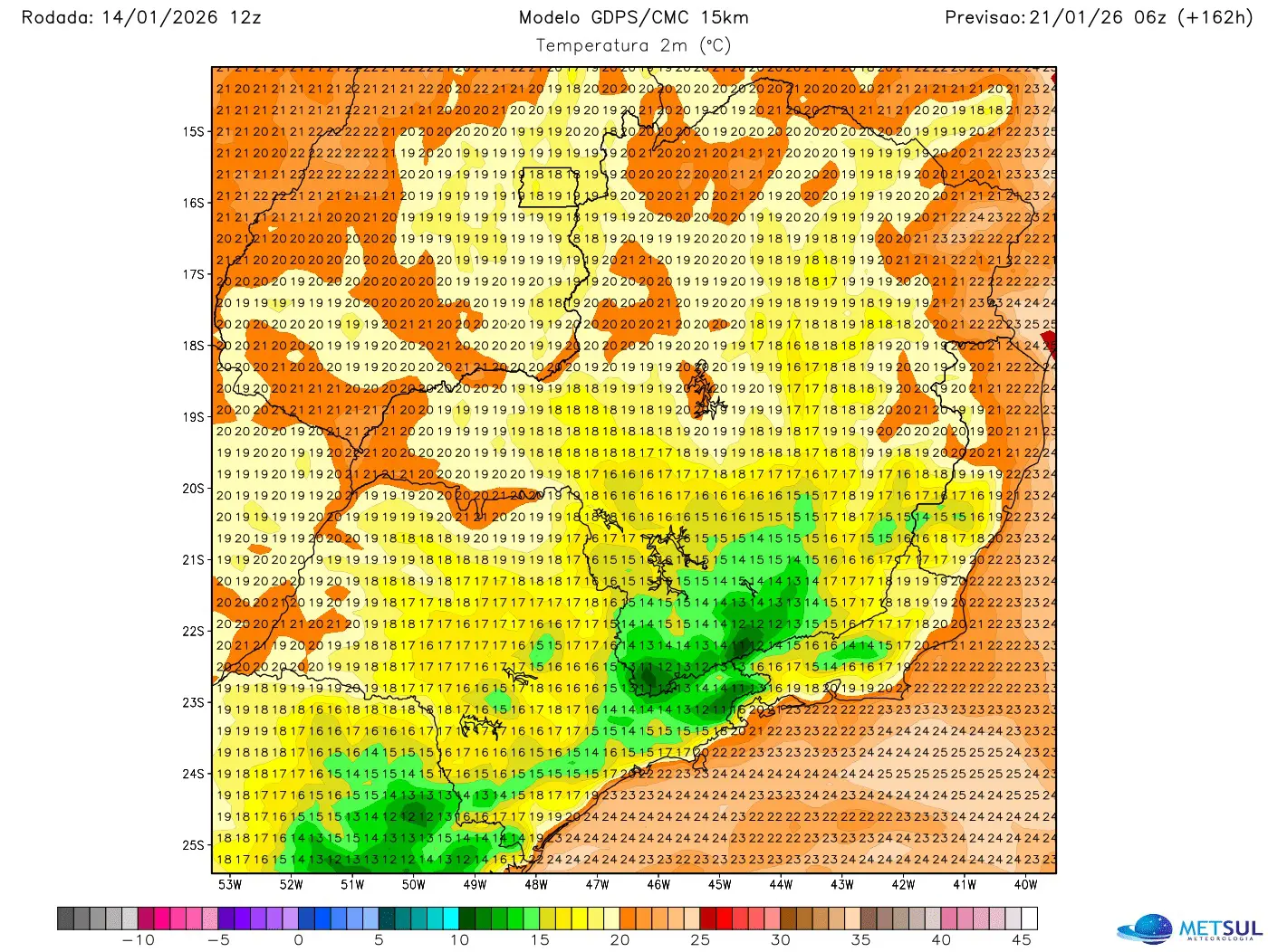 Os dados indicam que a massa de ar frio avançará rapidamente pelo Leste da Argentina no final do sábado (17) e durante o domingo (18), começando a ingressar no Rio Grande do Sul pelo Sul gaúcho ainda no domingo.