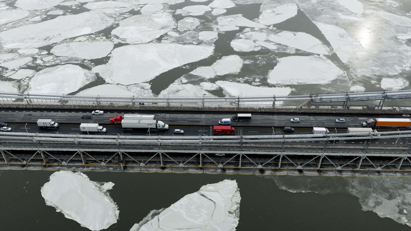 O fenômeno, proporcionado por uma massa de ar ártico congelante persistente, transformou o estuário em um mosaico de gelo flutuante, exigindo que a Guarda Costeira dos EUA intensificasse o monitoramento.