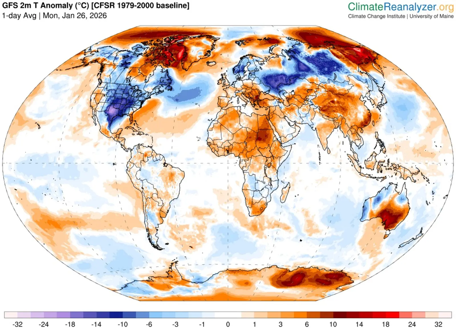 Algumas poucas áreas do planeta podem ter ficado muito frias nos últimos dias, mas, no geral, quase toda a Terra estava mais quente ou muito mais quente que a média. Uma realidade local isolada não pode ser usada para confrontar uma curva de tendência planetária porque para cada um ponto que ficou mais frio existem muitíssimo mais que ficaram mais quentes.