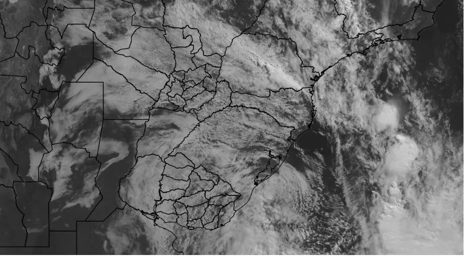 Um ciclone está configurado nesta terça-feira (31) sobre o Oceano Atlântico na costa do Sul do...