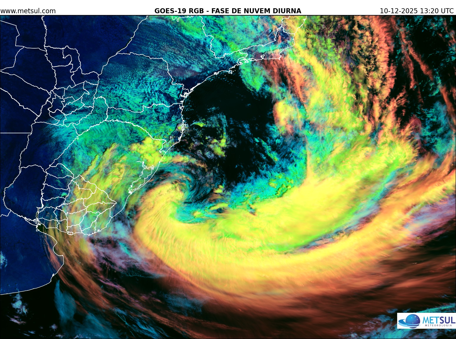 Ciclone na manhã de 10 de dezembro e que trouxe a pressão atmosférica excepcionalmente baixa em Porto Alegre | METSUL